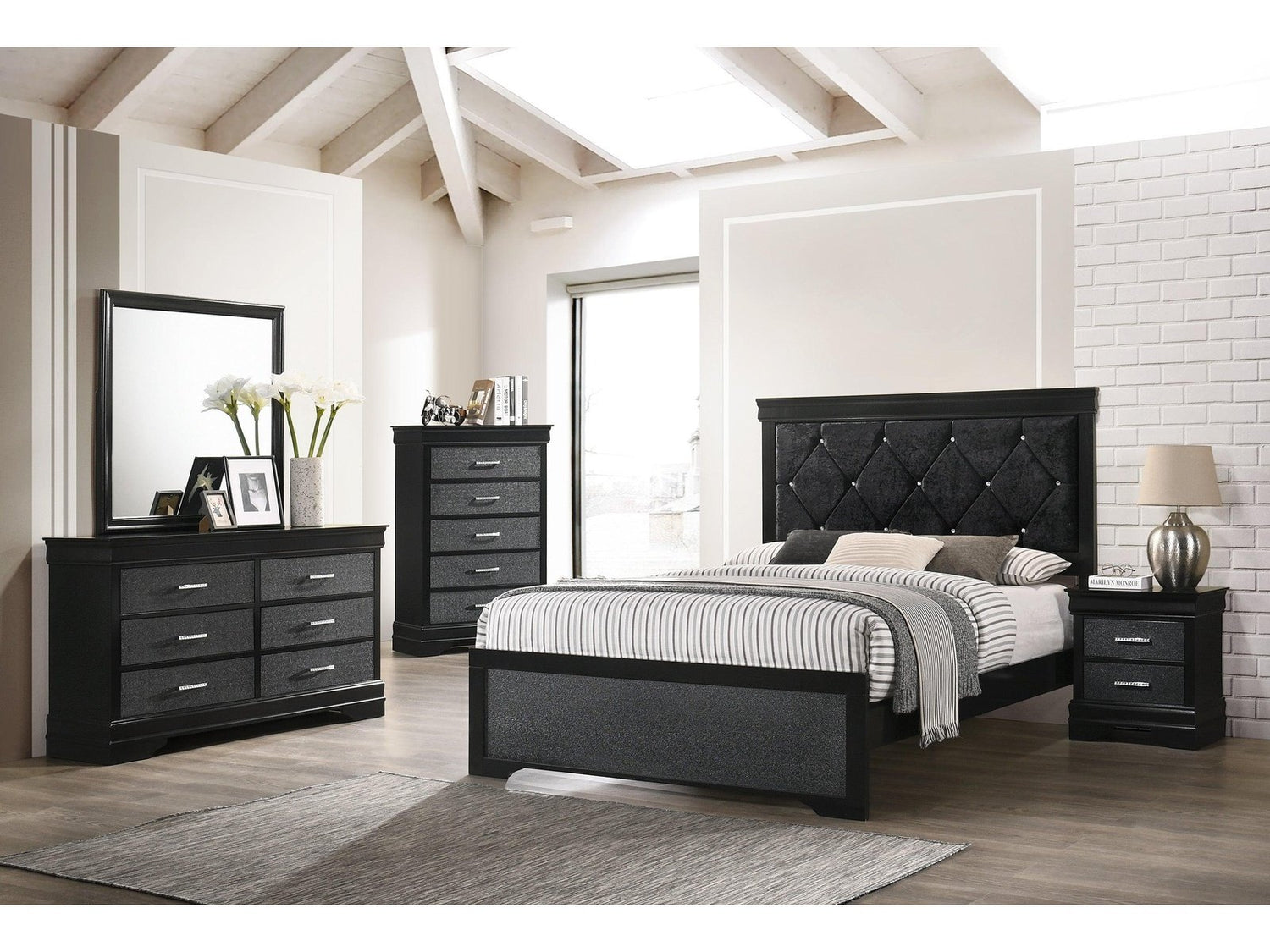 Item Name: Amalia Black Upholstered Panel Bedroom Set