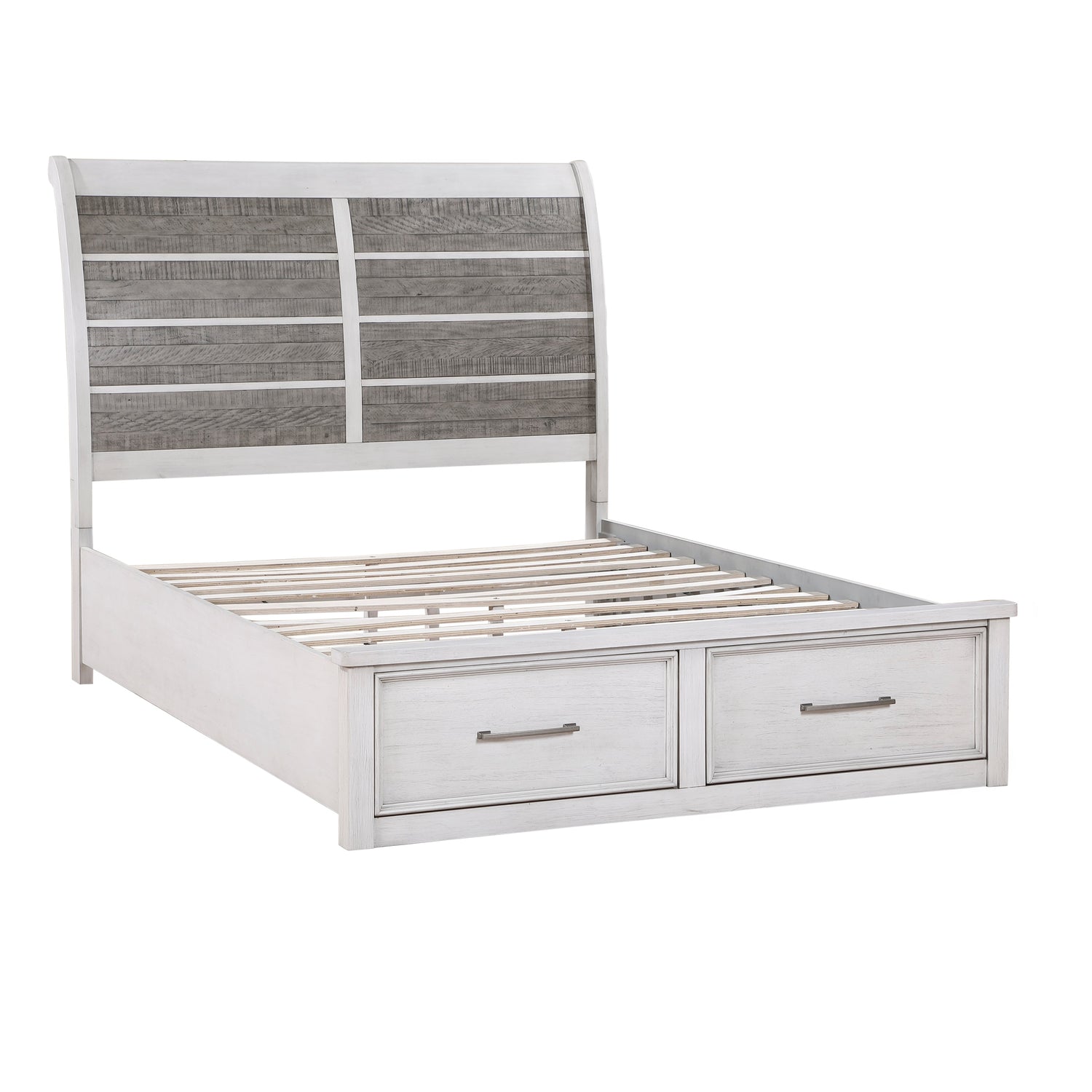 Hints of rustic styling permeate the transitional design of the Ambrose Collection, each subtle accent building to create a classic look for your bedroom. Antique White and Antique Gray finishes highlight the acacia veneer of the California King bed, their hues providing perfect complement to each other. The footboard’s drawers provide extra storage space within your bedroom while the bar that fronts the drawers of the bed are finished in antique pewter.