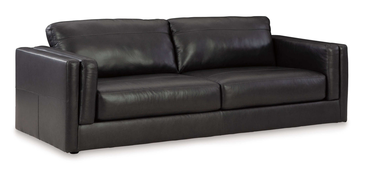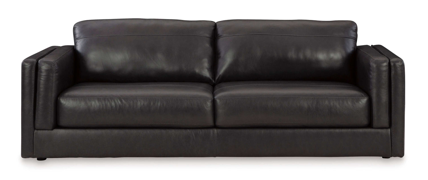 - Genuine leather typically covers inside areas such as the back, seat, and arm cushions; skillfully matched faux leather covers the remaining areas
