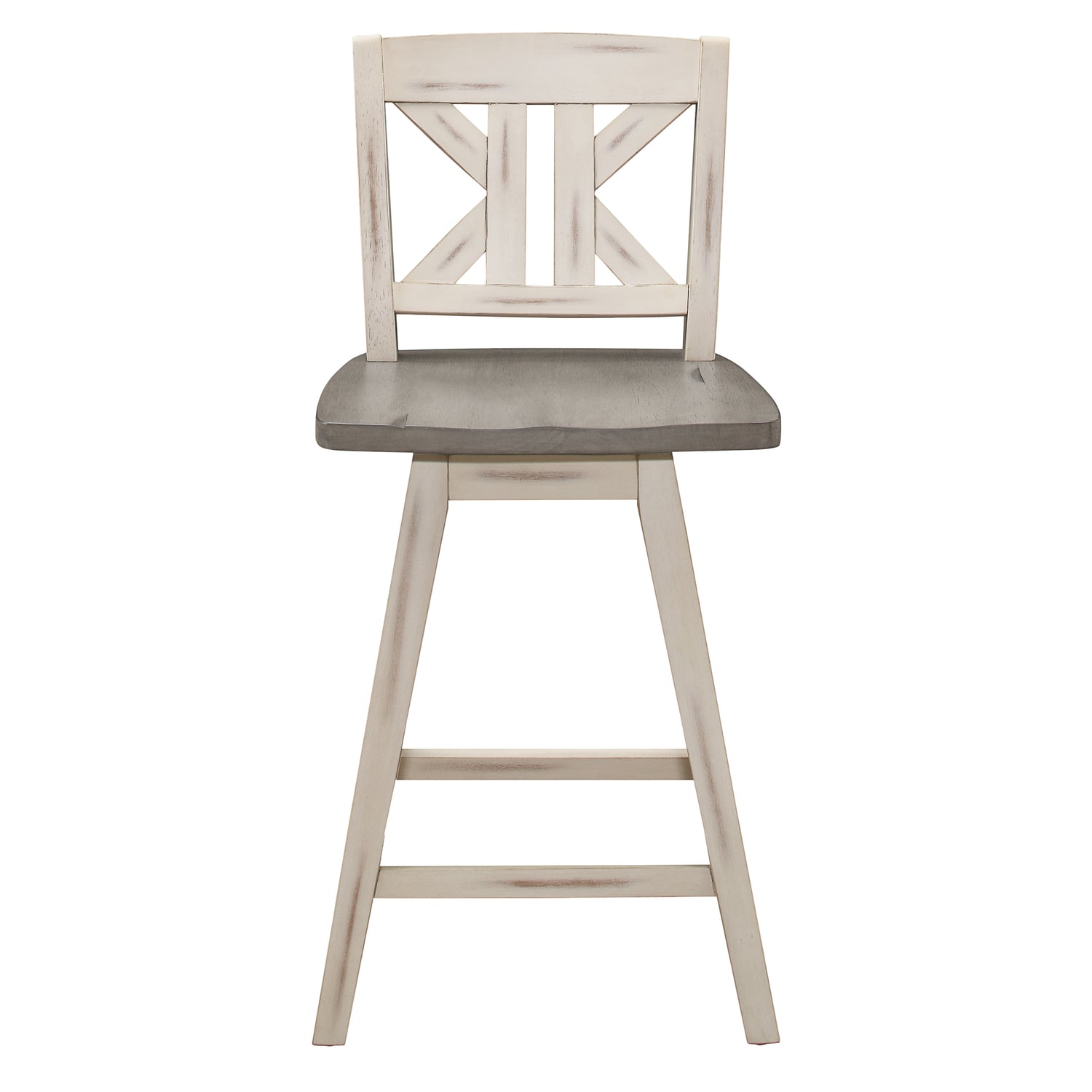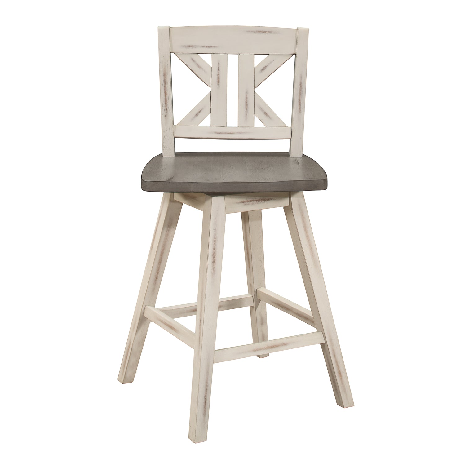 Creating a subtle rustic look is the design of the Amsonia Collection. A gray finish graces the solid rubberwood dining group highlighting the veneer. Providing visual interest beyond the classic styling, are the alternate finishes of the accompanying chairs, offered in black sand-though and white sand-through. The chairs also feature a swivel mechanism with three distinct seat backs X-back, divided X-back and vertical slat back, lending to ease of motion while seated.