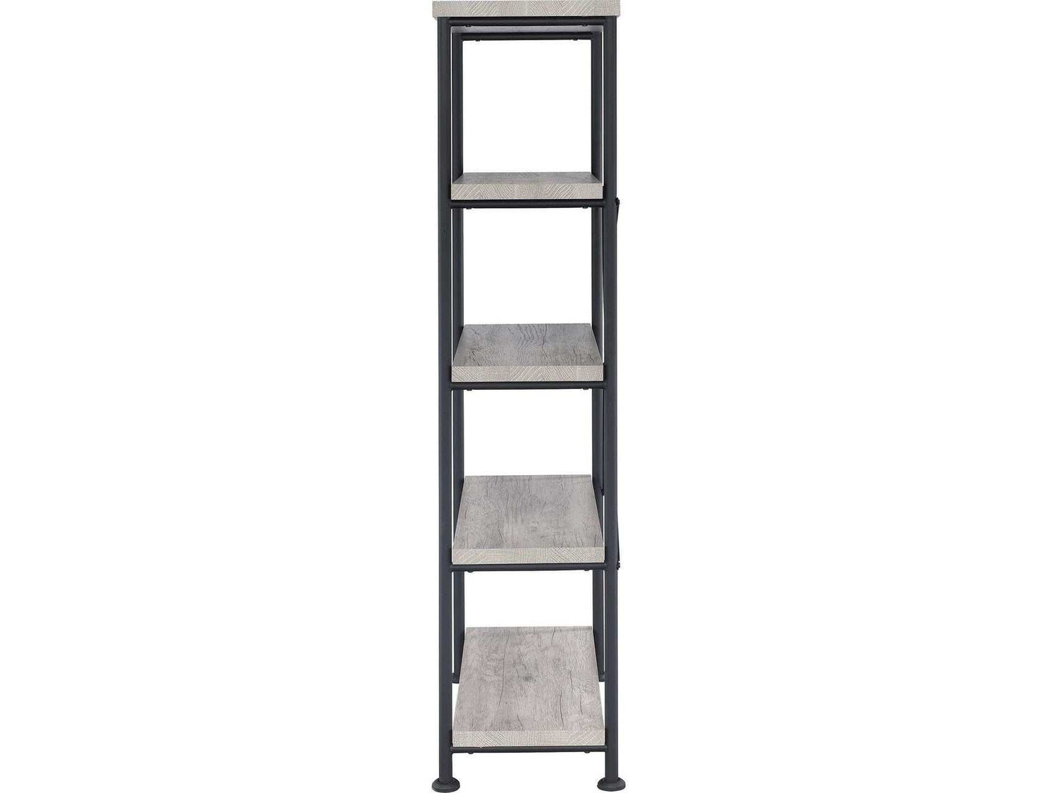 Stay true to modern ambiance. With a lovely palette and sophisticated design, this bookcase becomes an important part of a home office or living space. Place books and decor on four shelves finished in grey driftwood. A slight industrial flavor brings intriguing character and a softer aesthetic that blends in more traditional settings. This bookcase is a perfect choice for energizing any space.