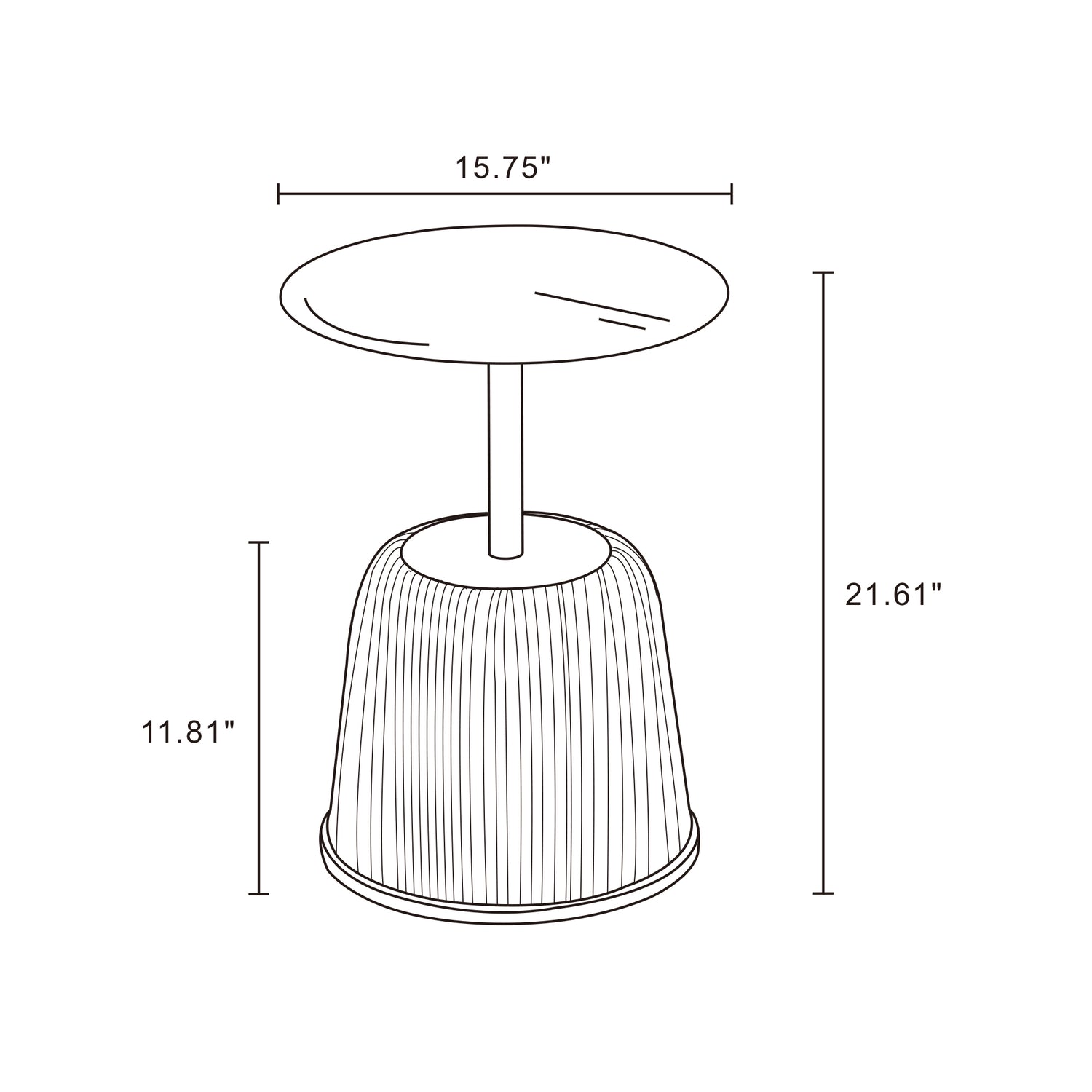 - Tabletop Diameter Measures 15.75 inches.
