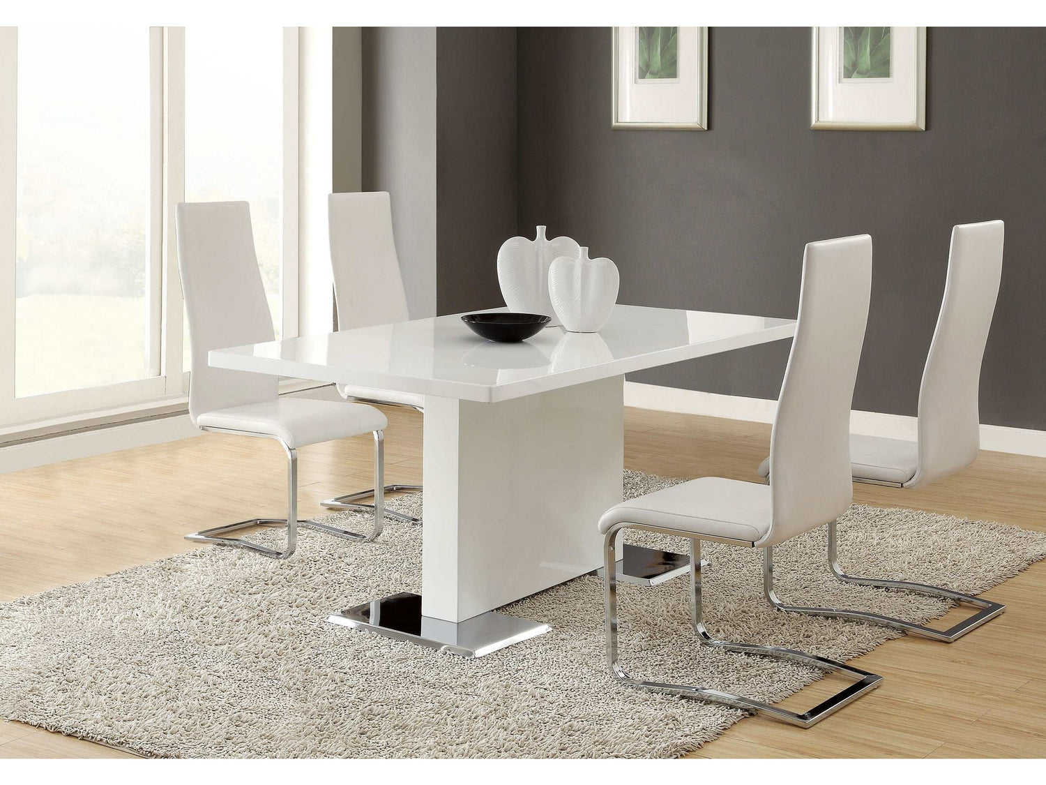 Transform your dining space with the sleek Anges 5-piece dining set, featuring a glossy white table and chrome base