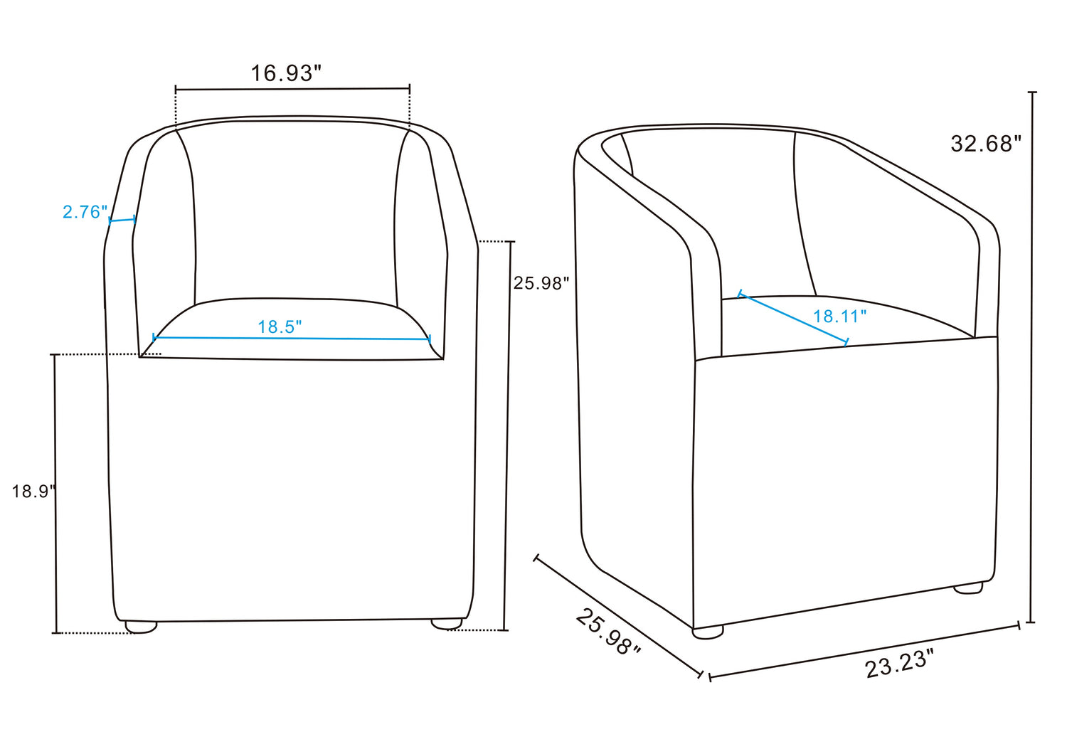 - Dining Armchair Dimensions Measure: 23.23 in. Length, 32.68 in. Height, 25.98 in. Depth.