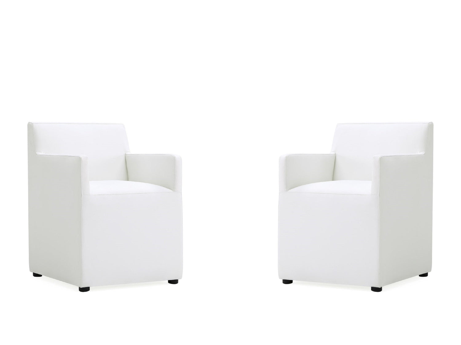 Anna Square Faux Leather Dining Armchair in Cream (set of 2)