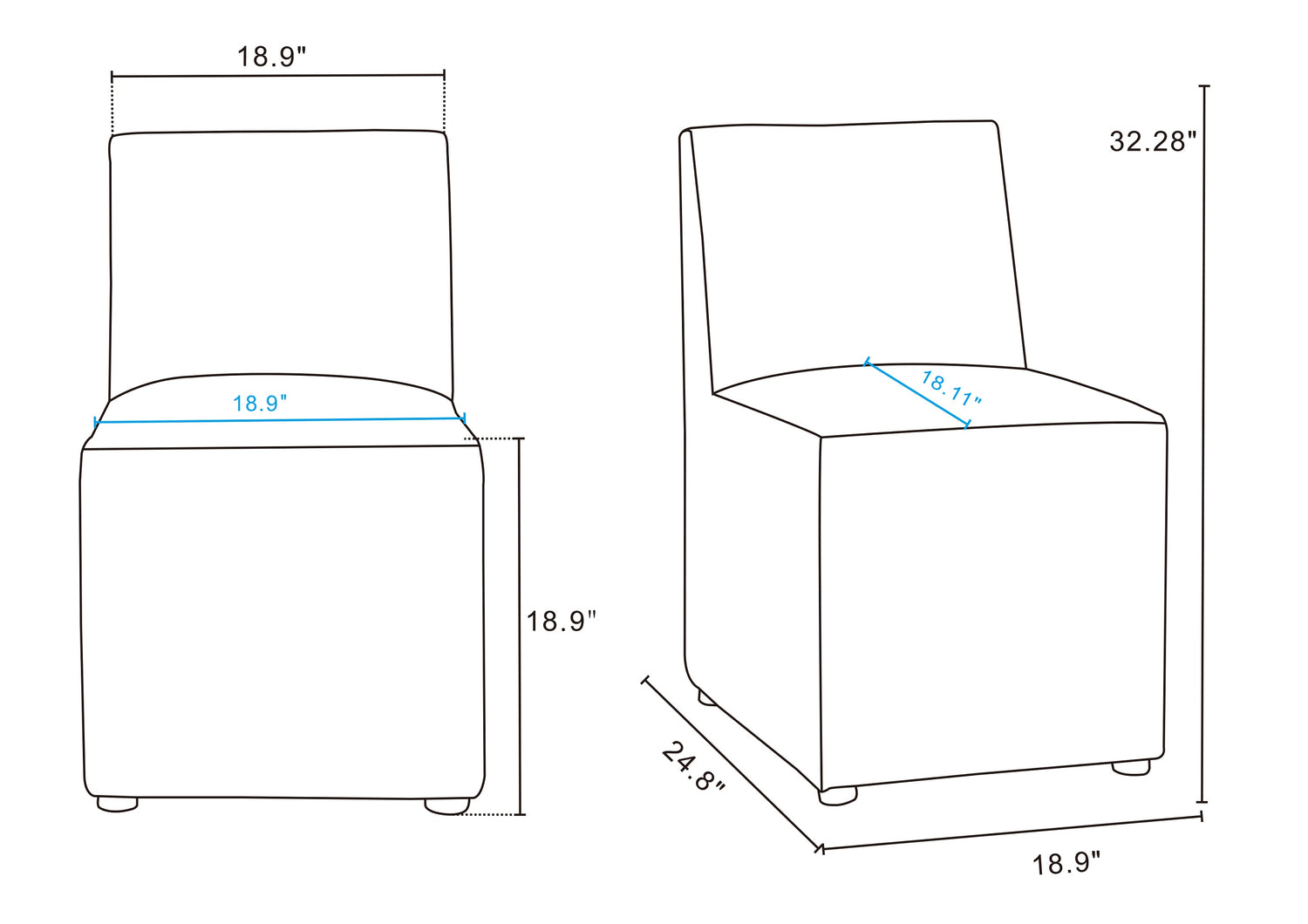 - Dining Chair Dimensions Measure: 18.9 in. Length, 32.28 in. Height, 24.8 in. Depth.