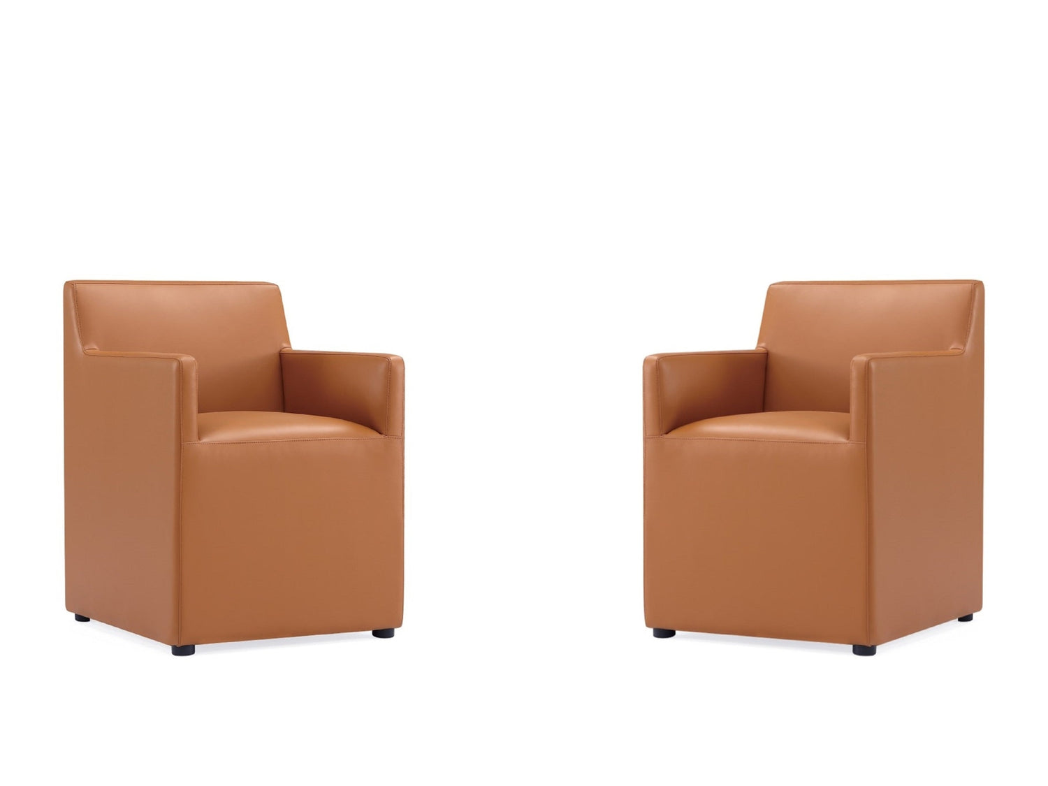 Anna Square Faux Leather Dining Armchair in Saddle (set of 2)