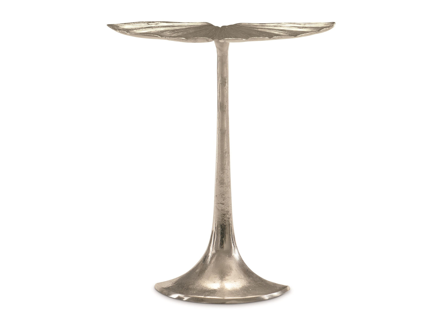 The Annabella Satin Nickel Accent Table is an accent table constructed from cast aluminum that adds artistic charm to any space. This graceful accent piece showcases distinctly modern styling with an abundance of creativity and a natural, feminine appeal. It features a classic tulip base and a delicate gingko leaf top, creating a unique focal point.