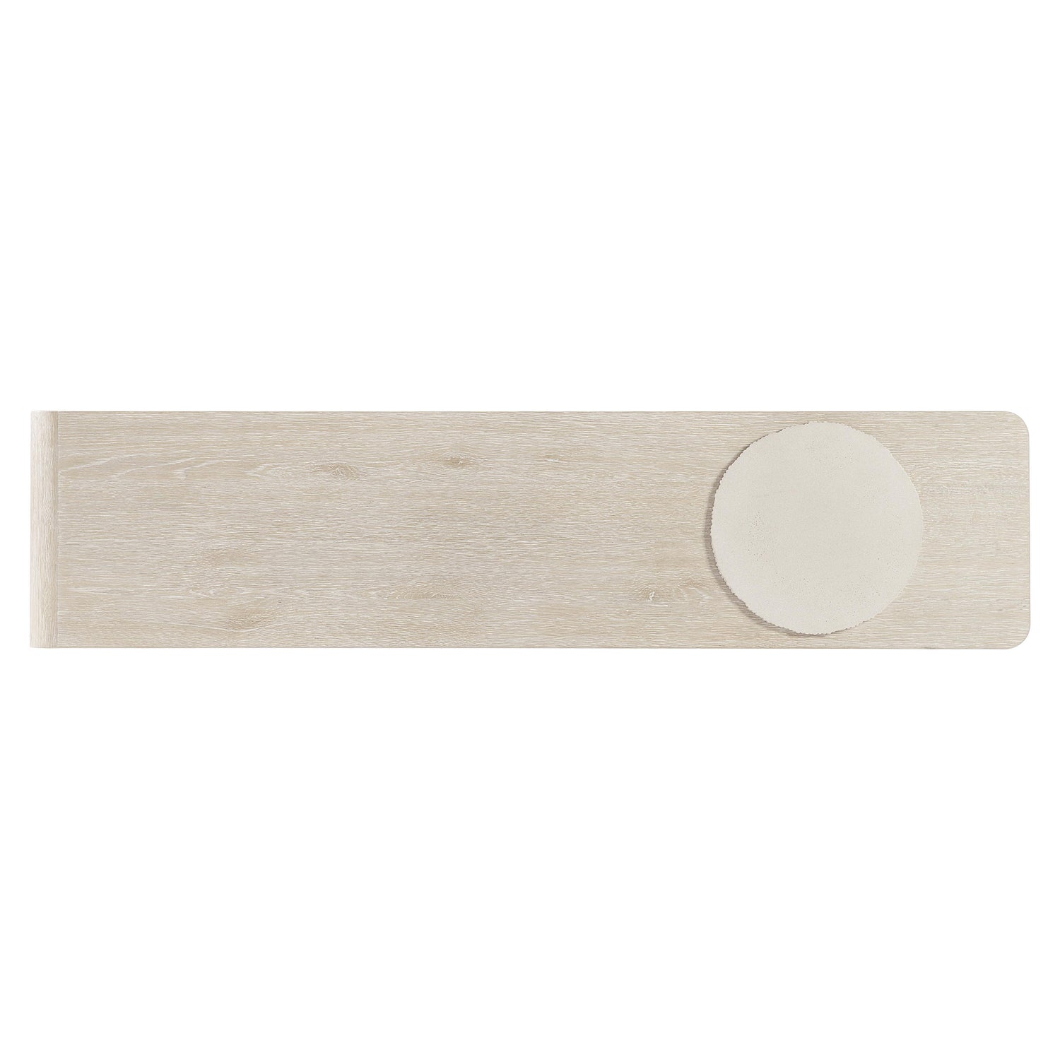 The Antibes console table offers a sculptural style with an elevated aesthetic. A juxtaposition of geometric shapes, the design is balanced and unique, with a glass-reinforced concrete pedestal that pierces the tables top. Texture is key to this look, with the heavily scored column balancing the wood of the waterfall top.