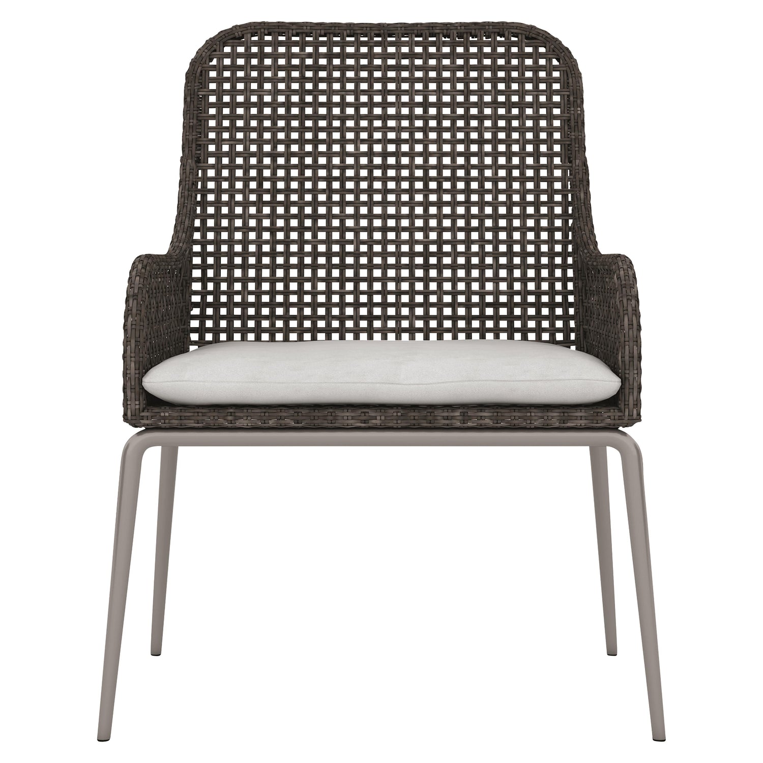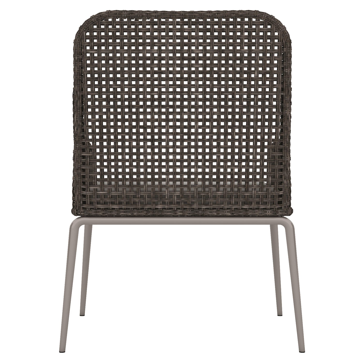 - Aluminum frame wrapped in herringbone weave All-Weather Wicker in Pewter Grey finish