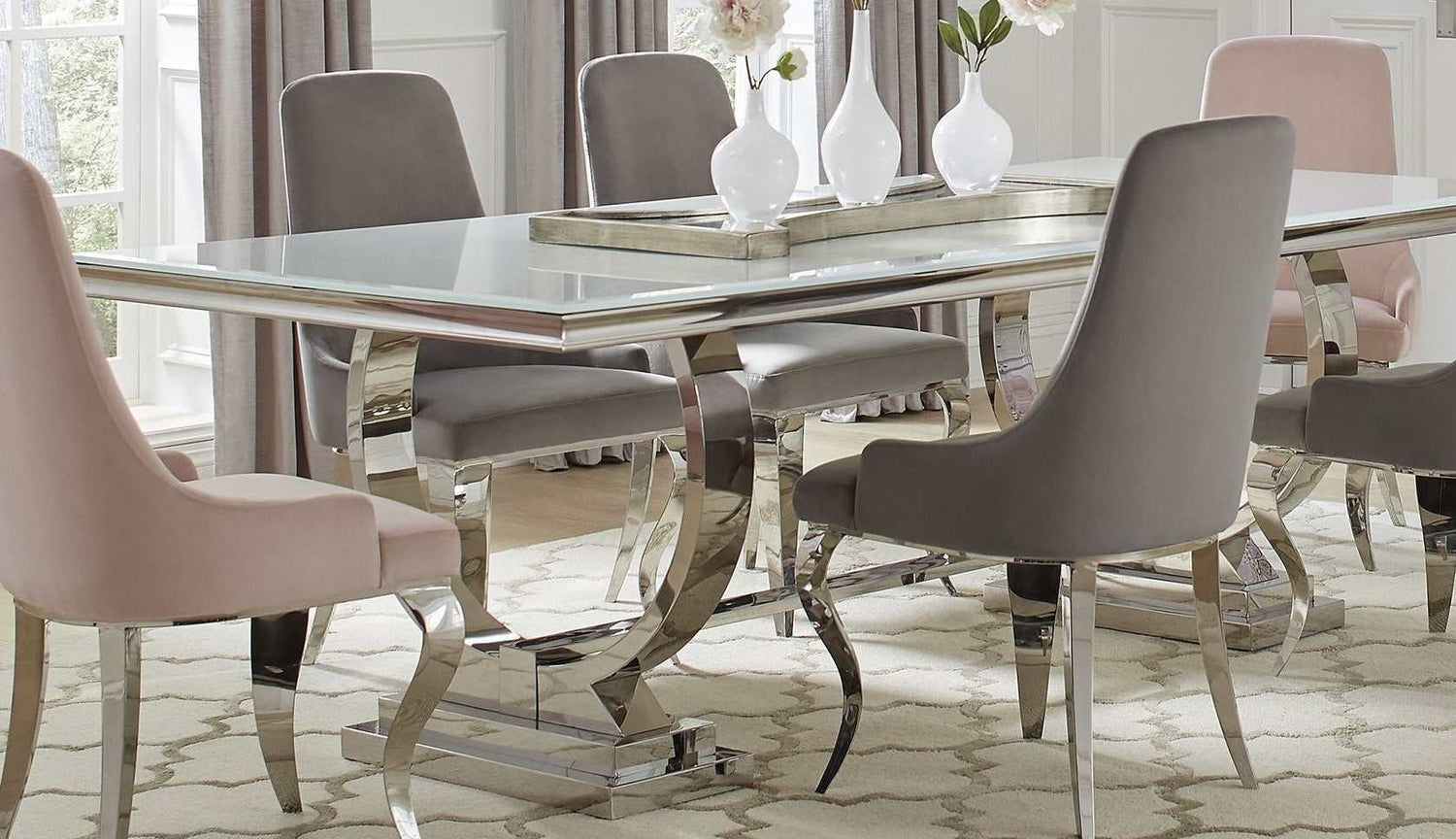 Antoine White & Chrome Dining Table