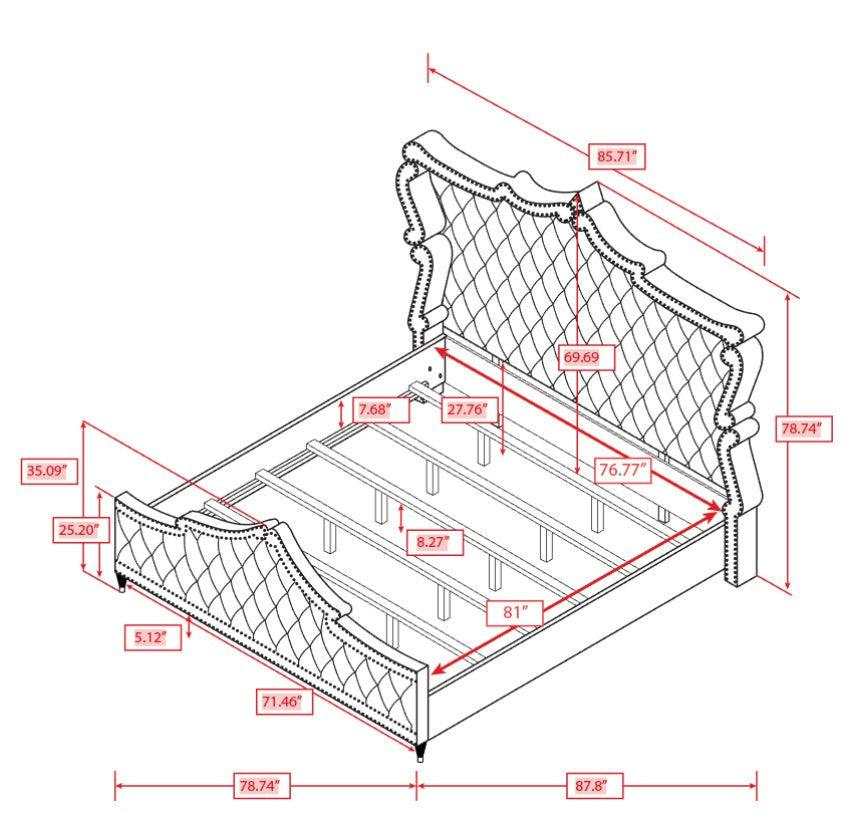 - Product materials: Asian hardwood, particle board, foam, fiber, velvet, acrylic buttons, metal leg caps and mirror