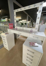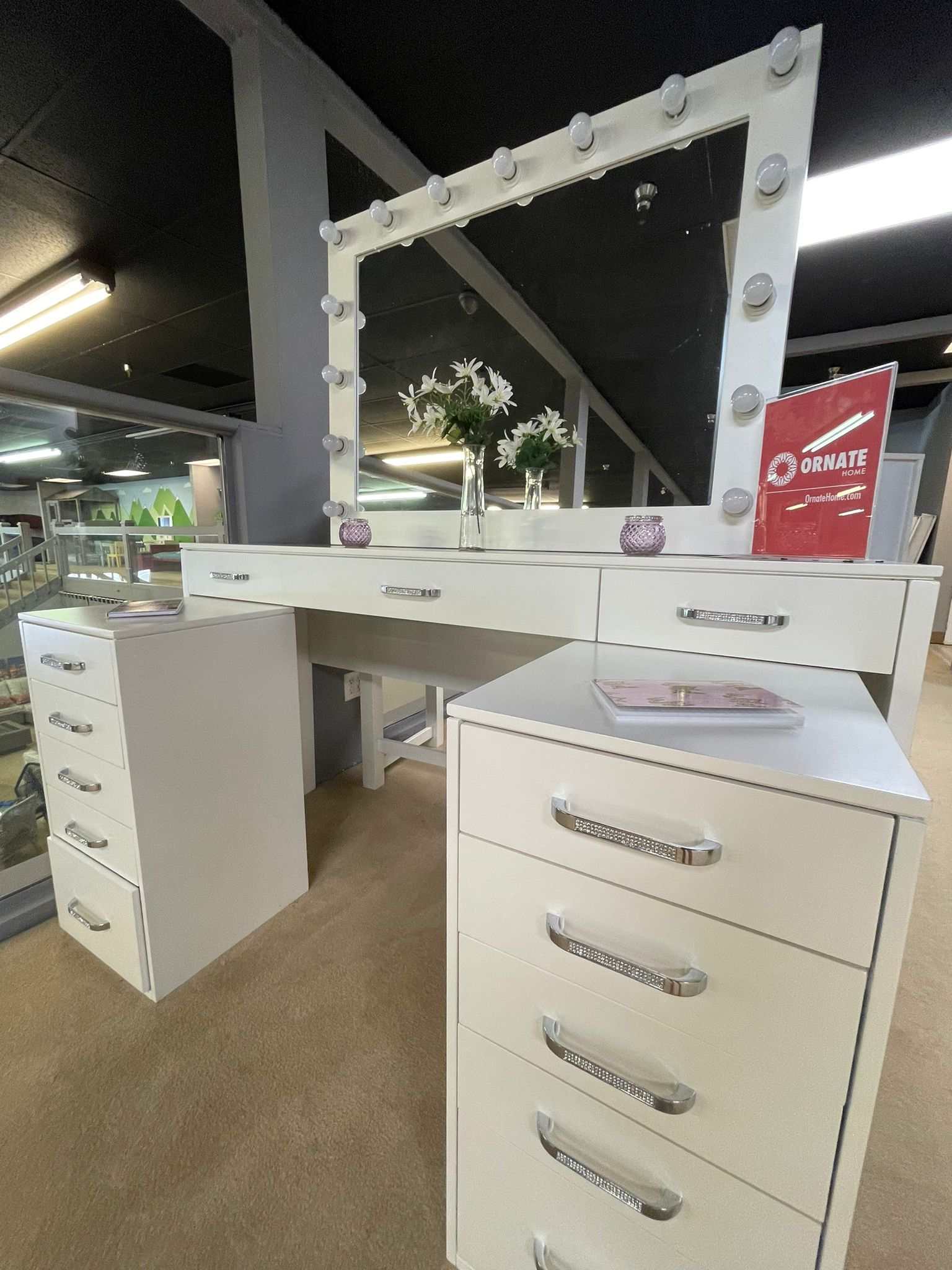 - Set includes; Vanity Table, 2 Cabinets, Mirror