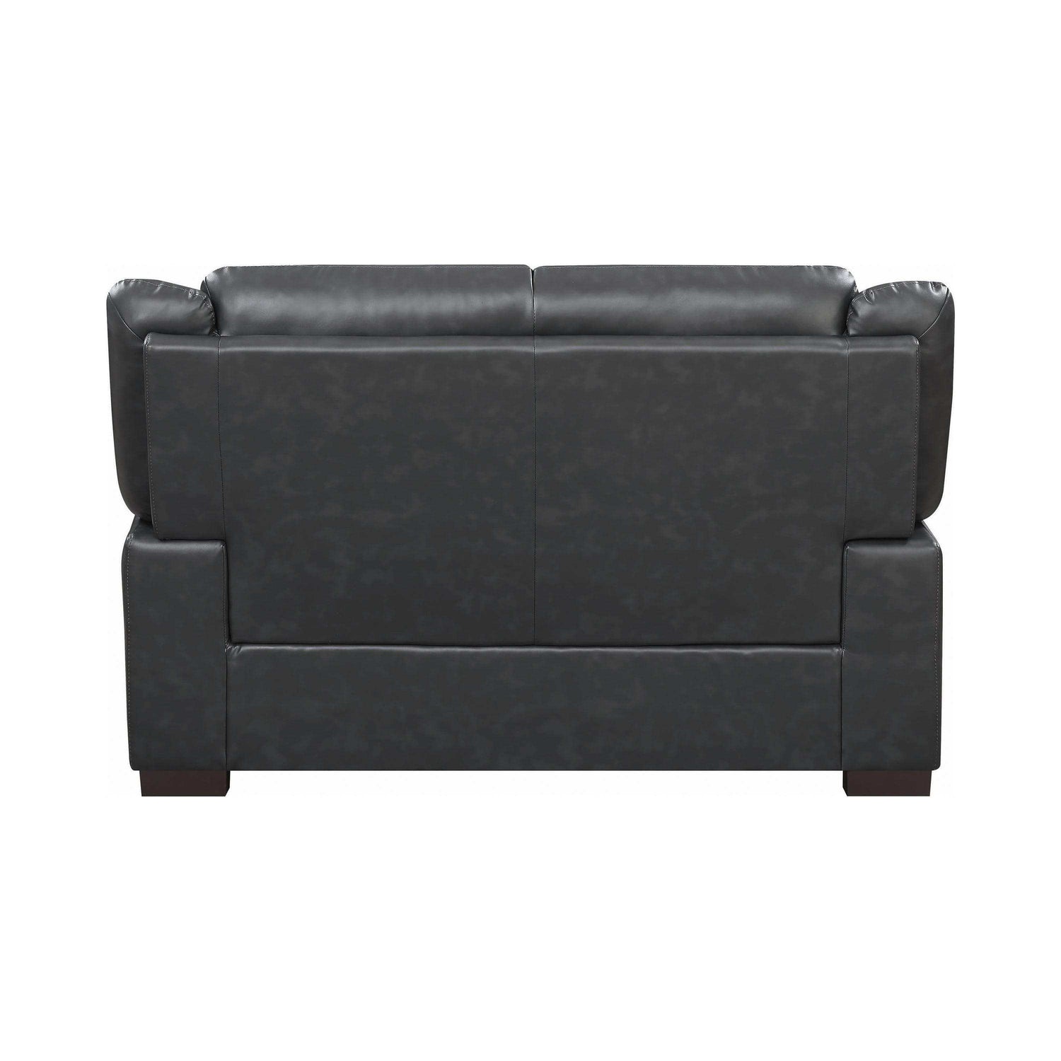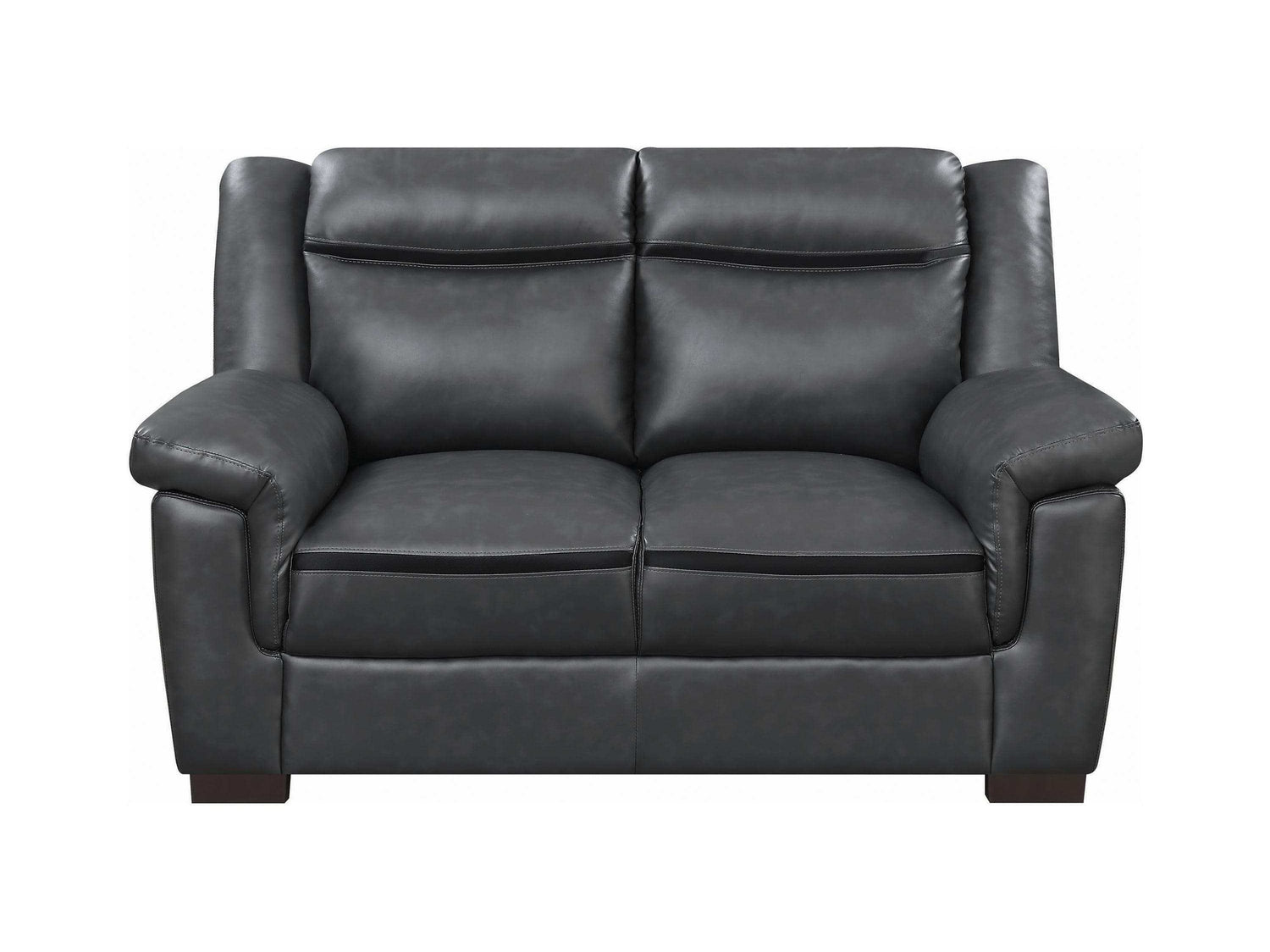Casual, comfortable, and classy, this loveseat instantly updates a room. With a modern design enhanced by chic, contrasting stitching, it exudes contemporary appeal. Its thick, cozy seat invites you to rest and relax in comfort. Its gorgeous, leather-like upholstery gives it a pleasingly polished look. A matching sofa and chair are also available to complete your living room lounge space.