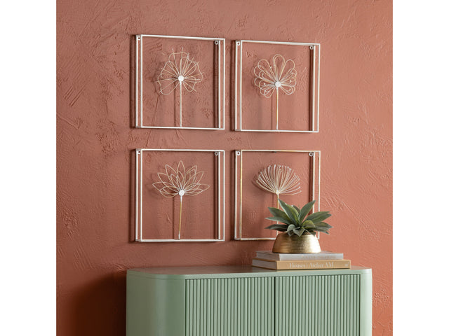 - Set of four decorative metal wall accents featuring floral silhouettes