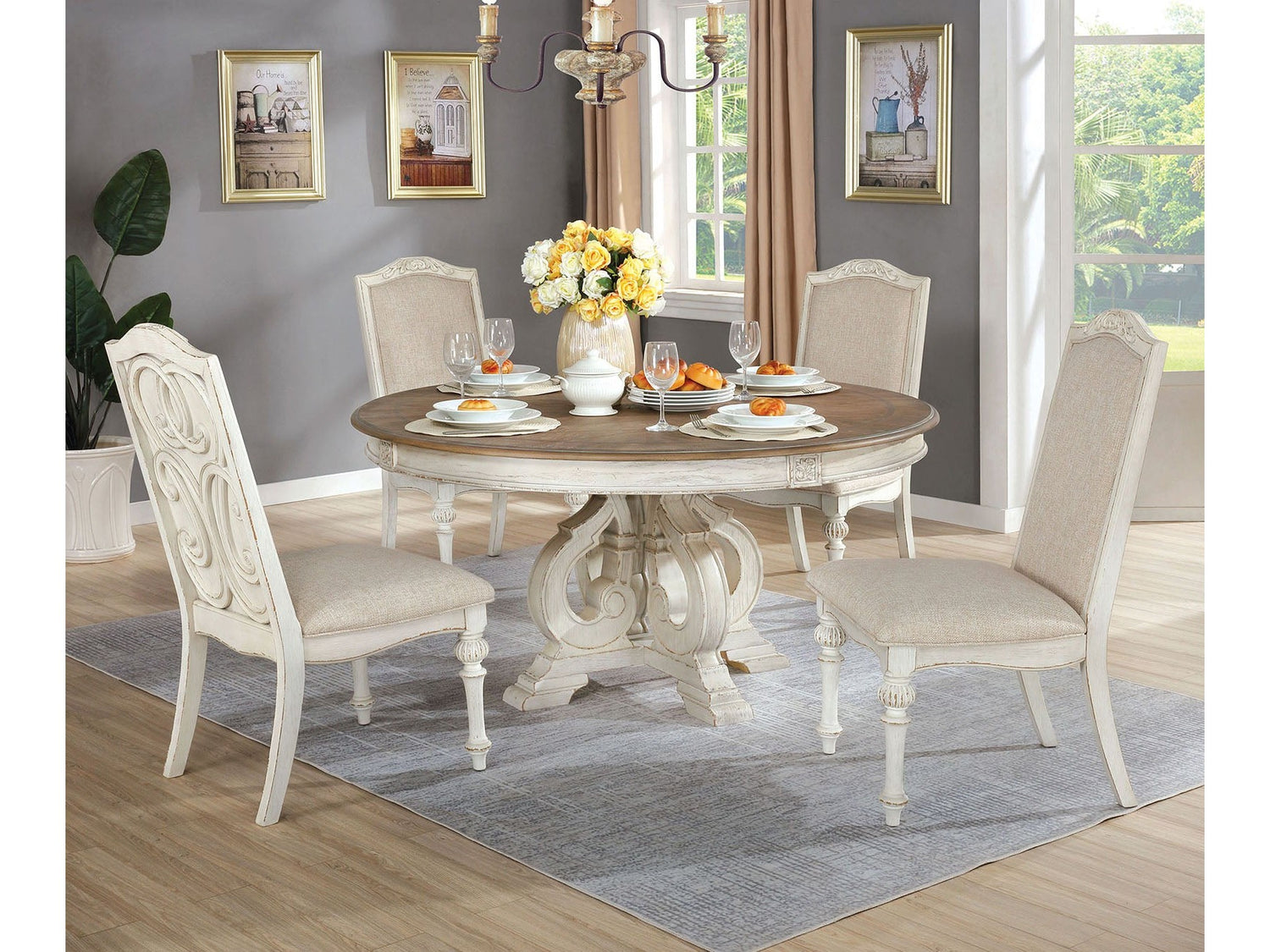 Arcadia Antique White/Ivory 5 Pc. Round Dining Room Set