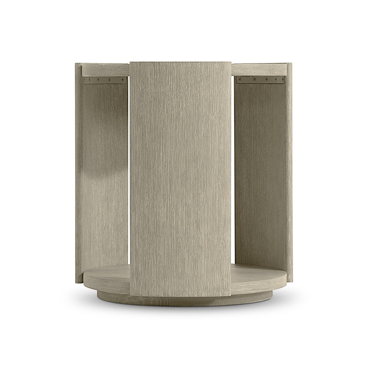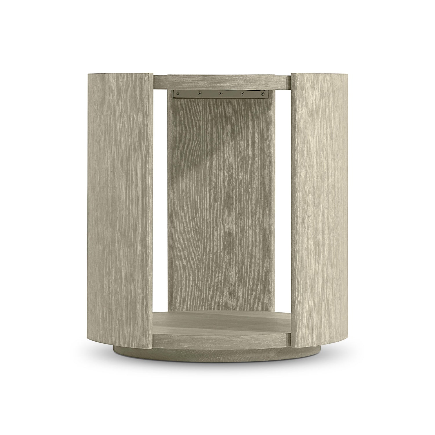 The Arcadia Clay Side Table is a side table constructed from oak veneers and woodgrain-textured cast resin that provides functional surfaces and a sculptural design element. Three panels embrace the top and lower shelf, creating lightness and open spaces for display or storage. Its distinct silhouette offers a blend of natural texture and contemporary form.