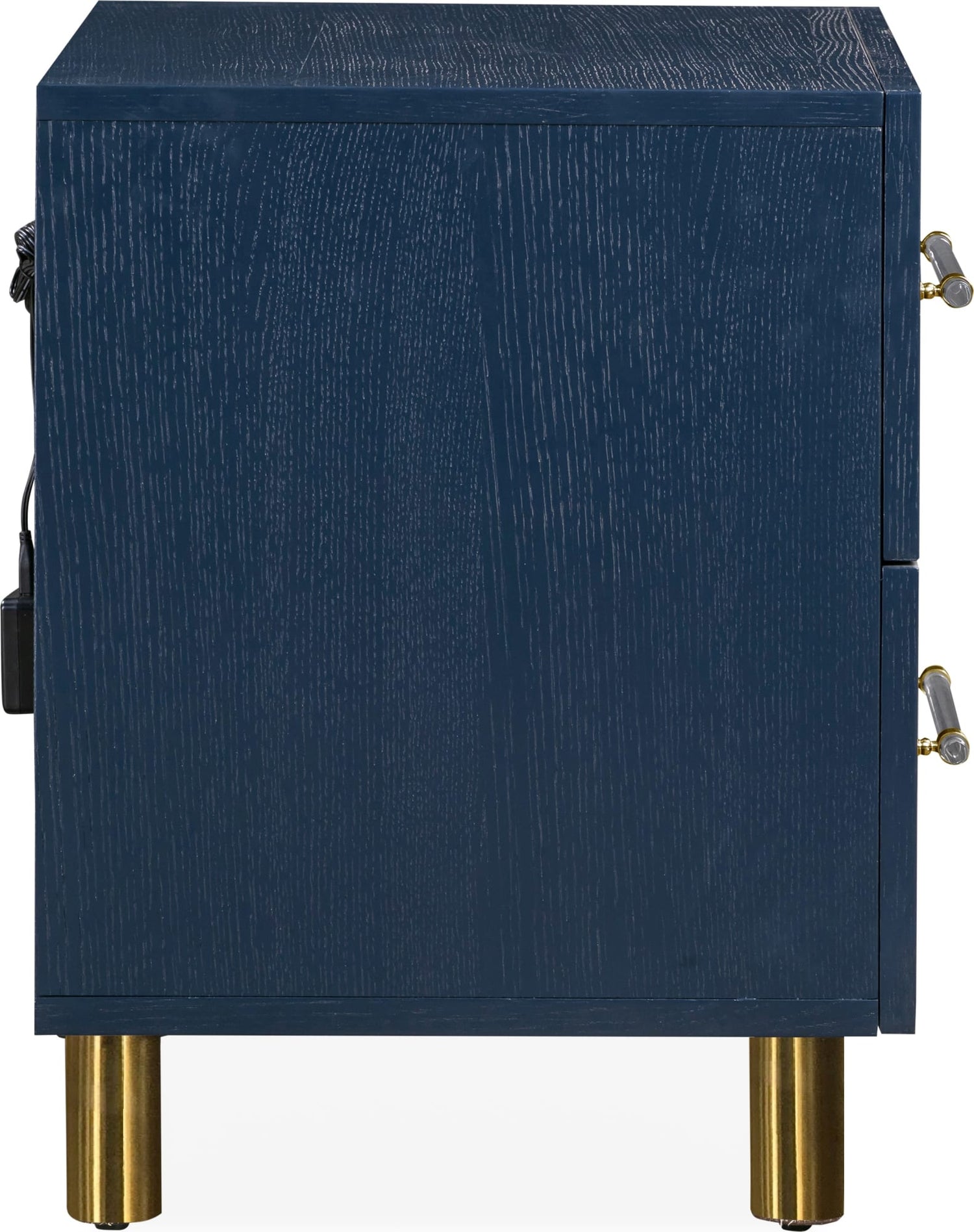 Argento Navy Blue/Burnished Brass Two Drawer USB Charging Nightstand