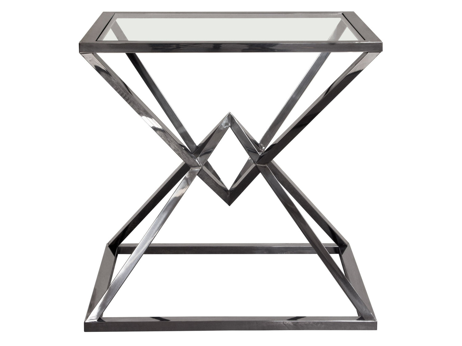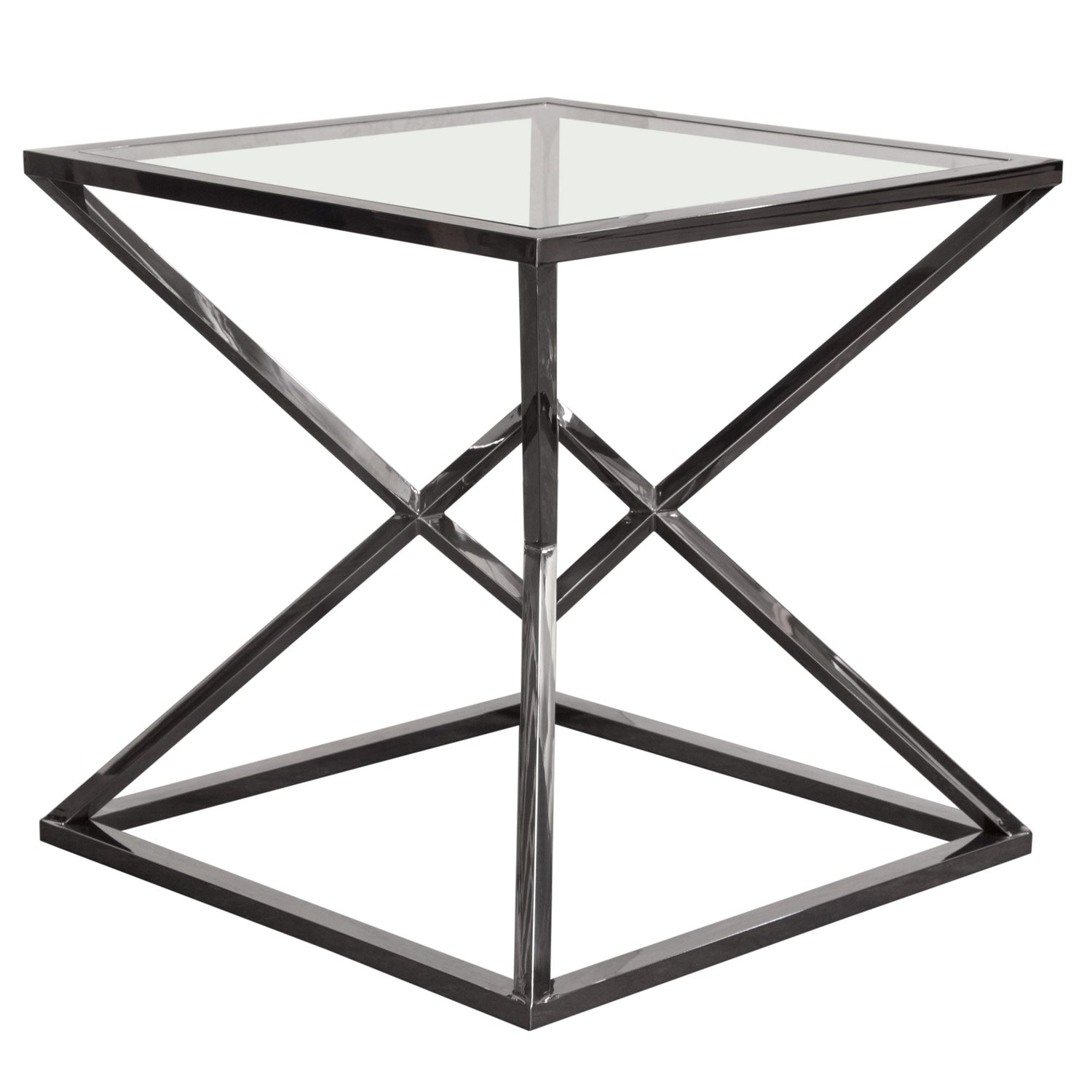 - Stainless Steel base is offered in polished gold or polished tinted black finish with clear, tempered glass top providing a light and glamorous addition to its surroundings.