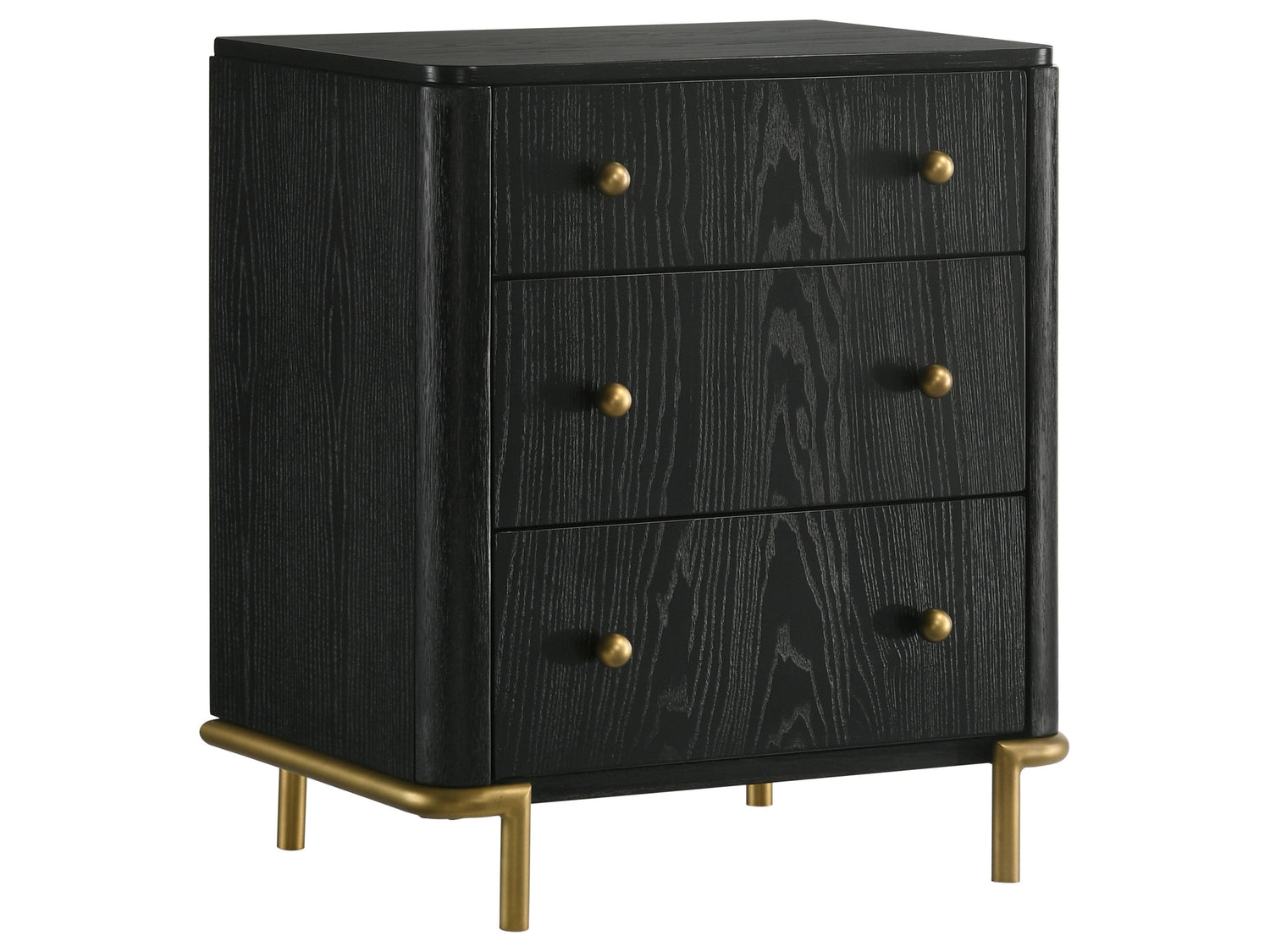 - Includes: One (1) nightstand- Modern nightstand offers three drawers for easy and accessible bedside storage