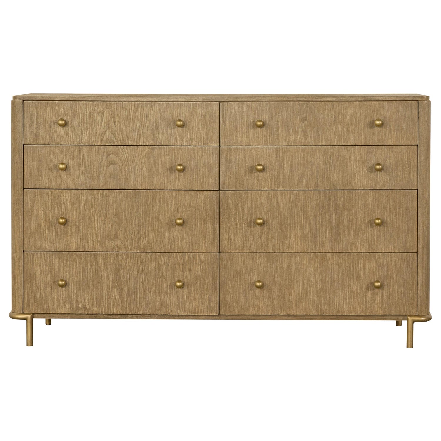 - Aged brass knobs and slender metal legs add a subtle touch of elegance