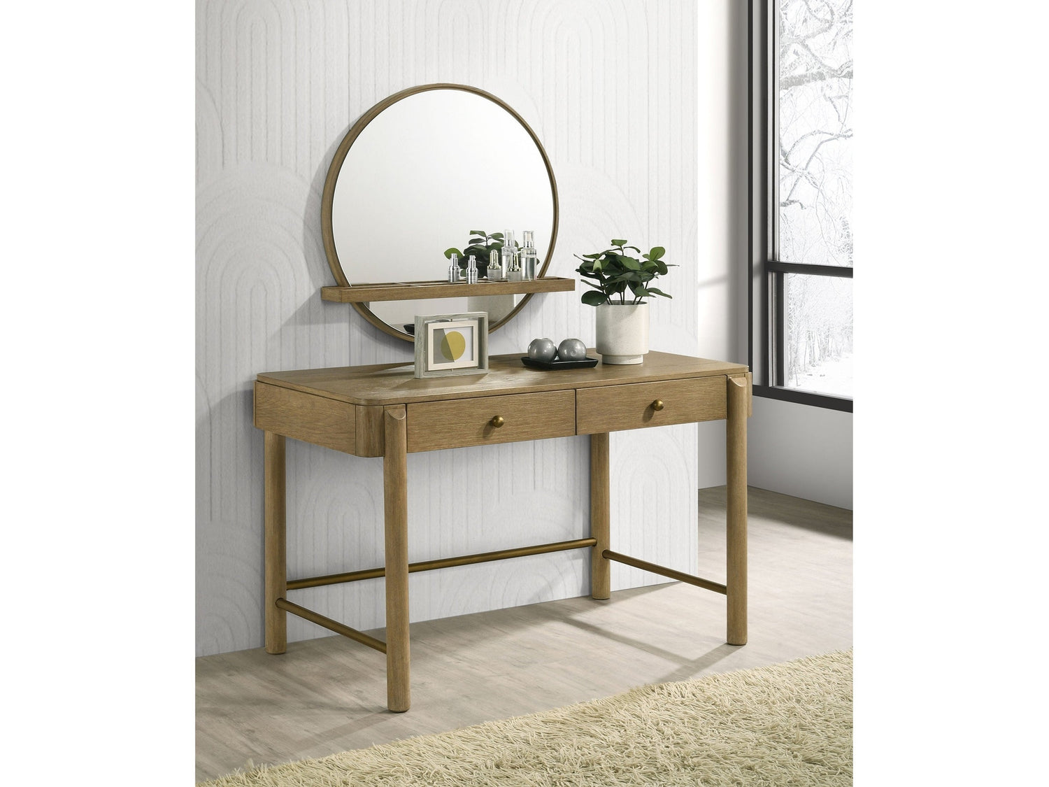 - Includes: One (1) vanity table and one (1) mirror- Two piece makeup vanity set includes a vanity table and a round wall