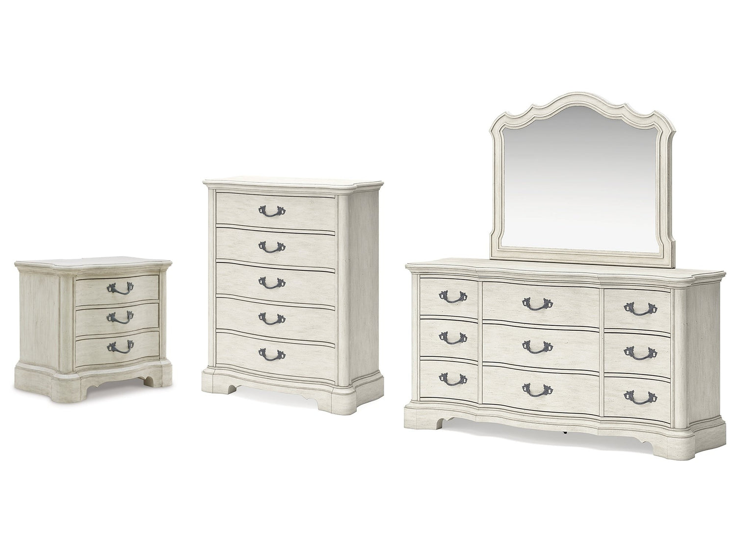 Arlendyne Antique White Dresser, Mirror, Chest and Nightstand