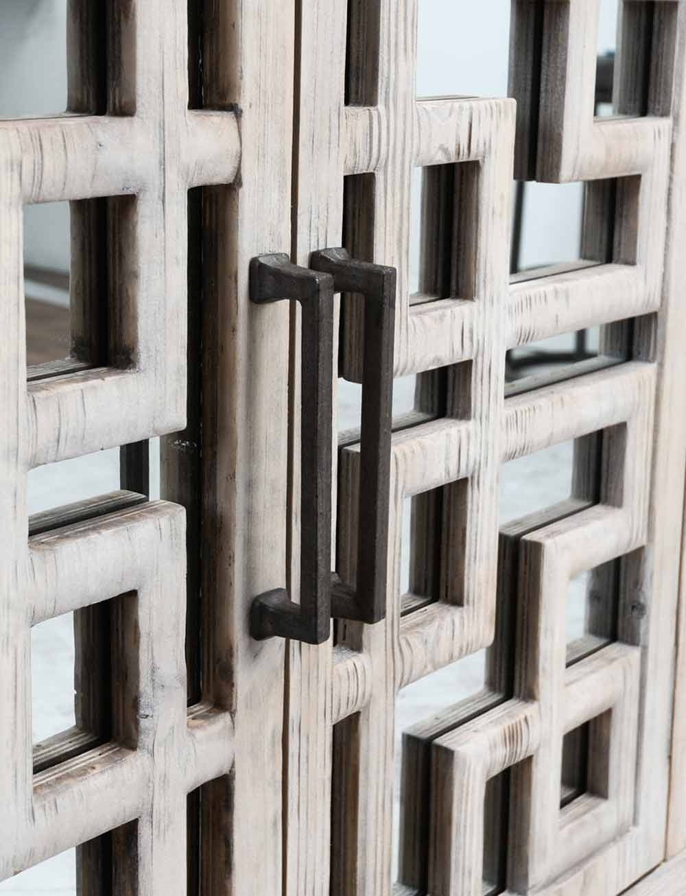 Infuse your space with vintage style with this sideboard featuring a geometric pattern and reclaimed wood construction.