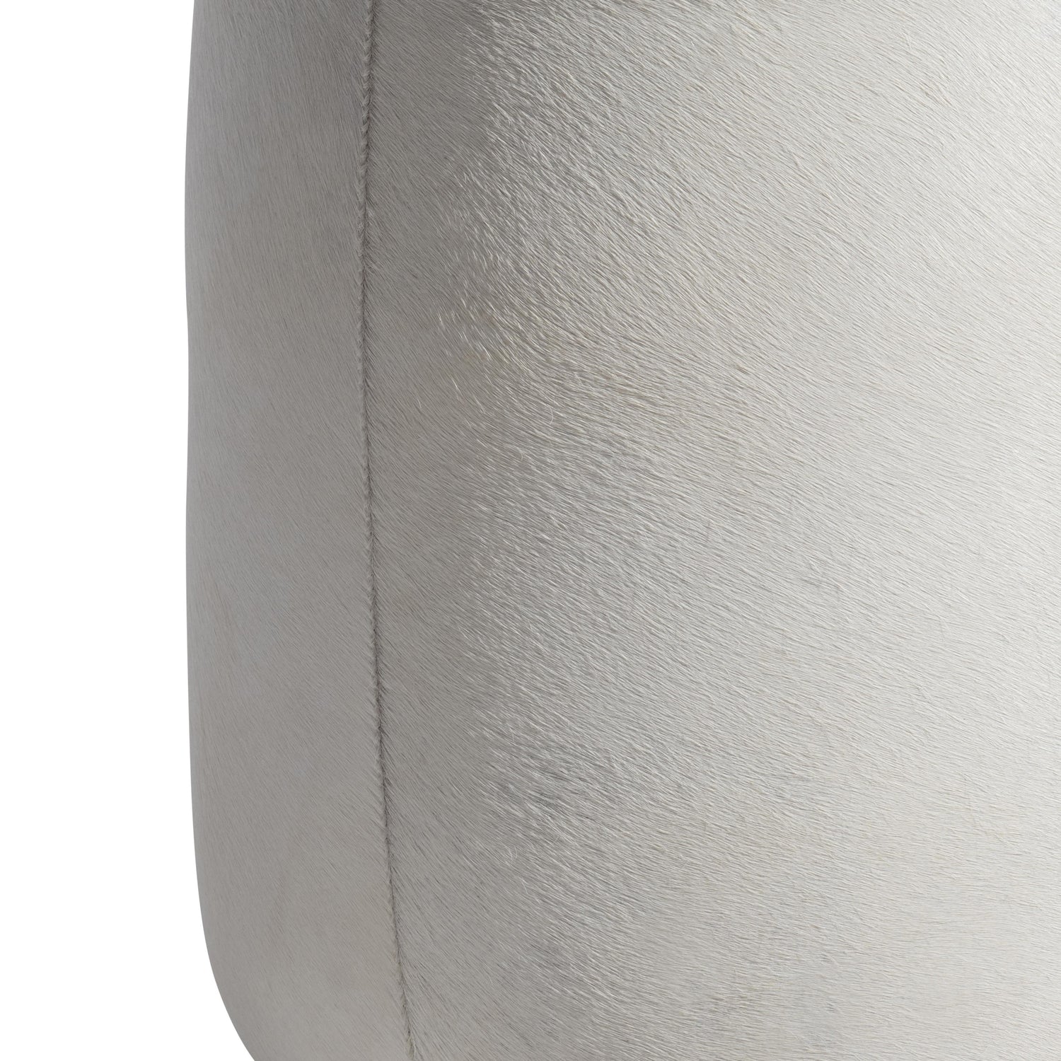 The Ash White/Cream Leather Ottoman is an ottoman constructed from hair-on-hide and stainless steel that provides a distinctive accent and practical seating. Its modern profile features a round, raised top and a fully upholstered seat, creating a unique focal point in any room.
