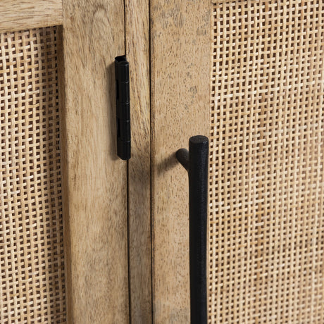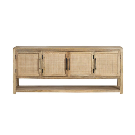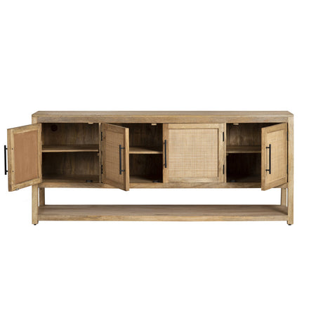 - Ample Storage: Features two internal fixed shelves behind four doors for versatile organization.