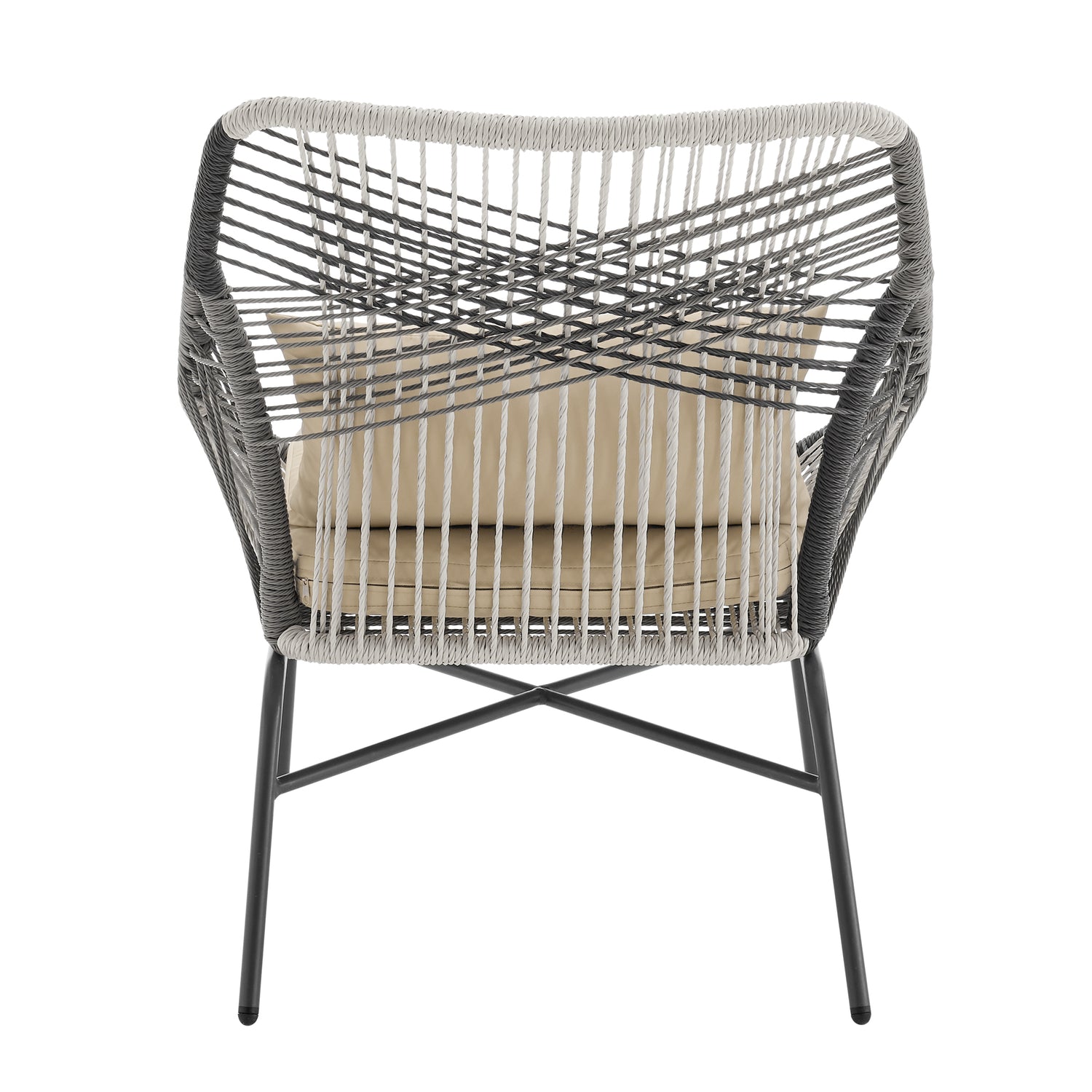 - Frame Made of Rust Resistant Steel Wrapped in PE Rope Perfect for Outdoor Weather.