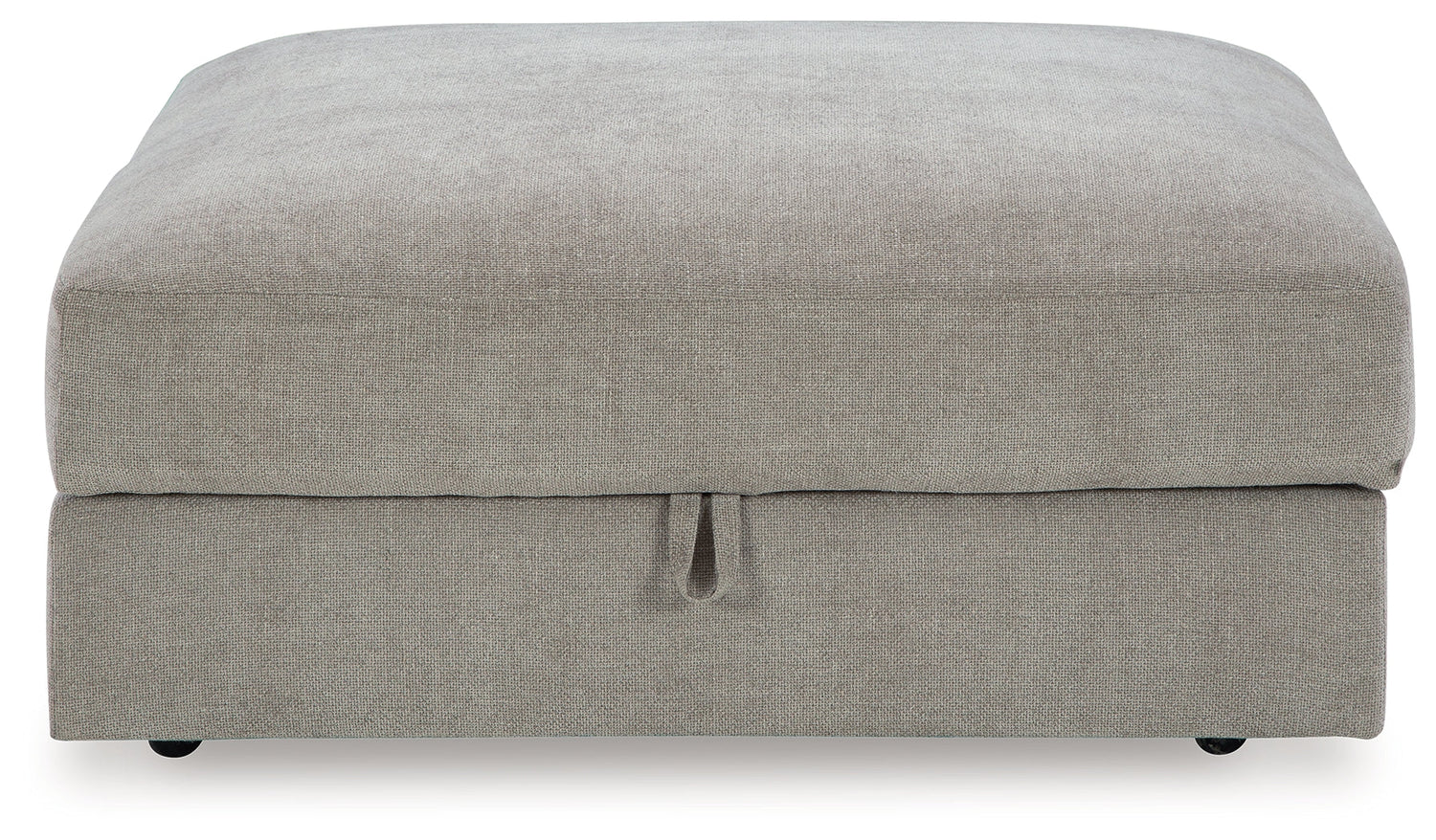 - The Oversized Accent Ottoman features locking casters, storage and gas cylinder for lid closer