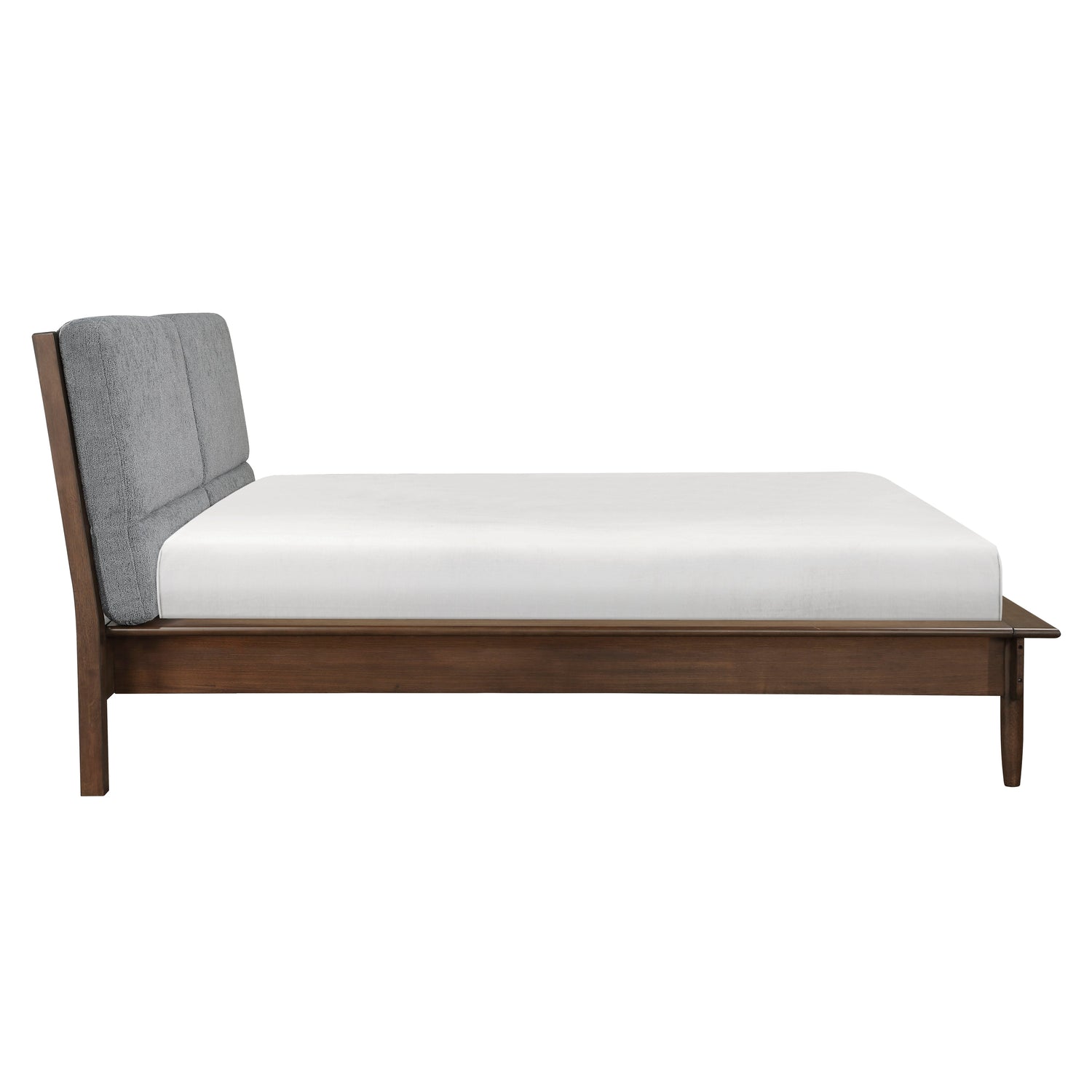• Material: Made of walnut veneer, wood and engineered wood, Walnut finish, Textured fabric upholstered headboard, Includes headboard, footboard, slats and rails, Foundation/box spring not required, Assembly required