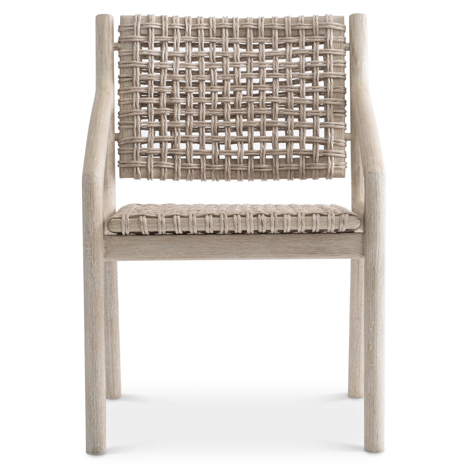 The Atlas Sea Oat /Pampas Outdoor Arm Chair is an outdoor arm chair constructed from all-weather wicker and teak that provides comfortable seating for outside areas. A distinctive open weave in all-weather wicker sets a relaxed mood. The mix of materials forms a unique style for outdoor living.