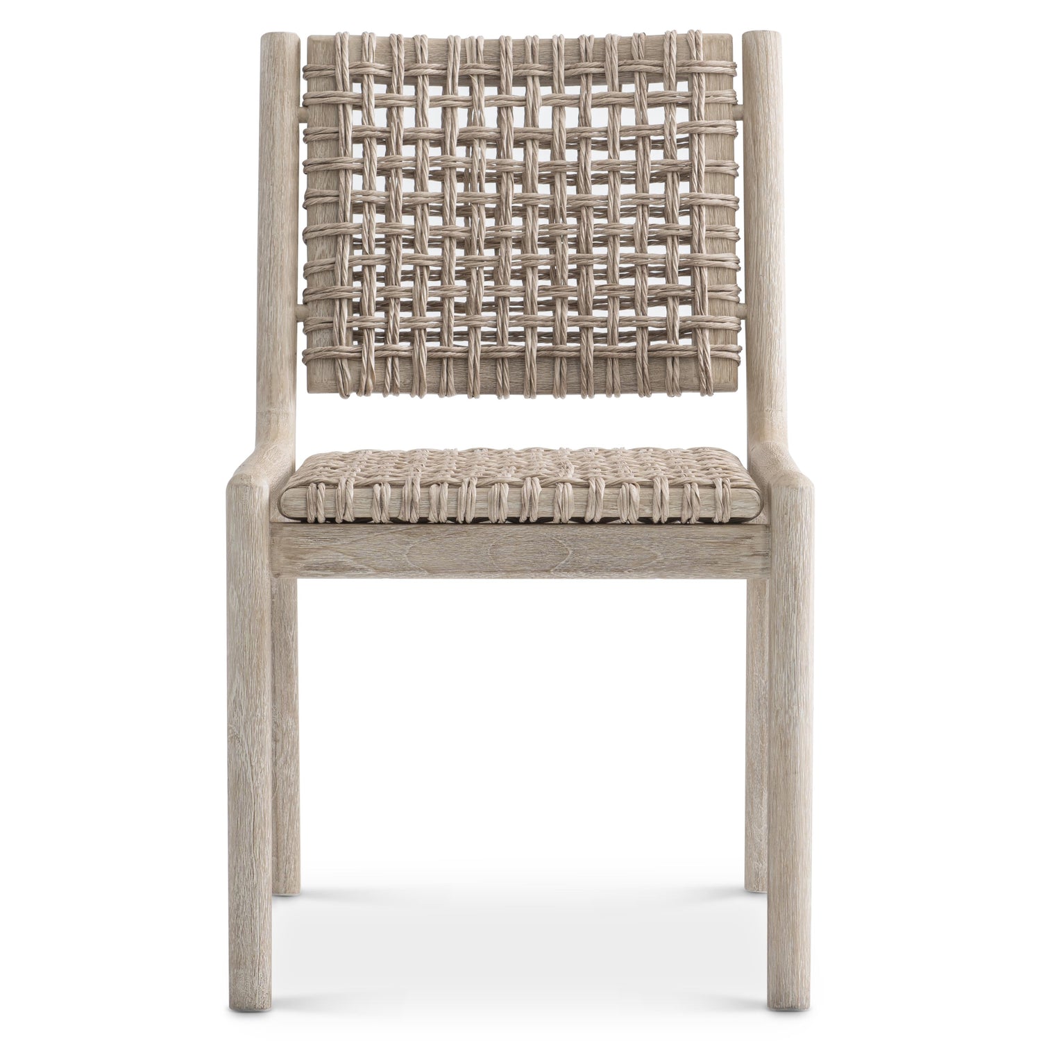 A distinctive open weave in all-weather wicker elevates the style of the laid-back Atlas side chair. The teak frame has sleek and shapely lines that offer a stunning base. The mix of materials crafts a uniquely elegant style for outdoor living. Optional purchase fabric pad also available.