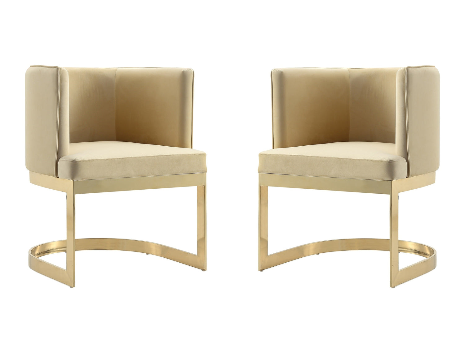 - Item Name: Aura Dining Chair in Sand and Polished Brass (set of 2)