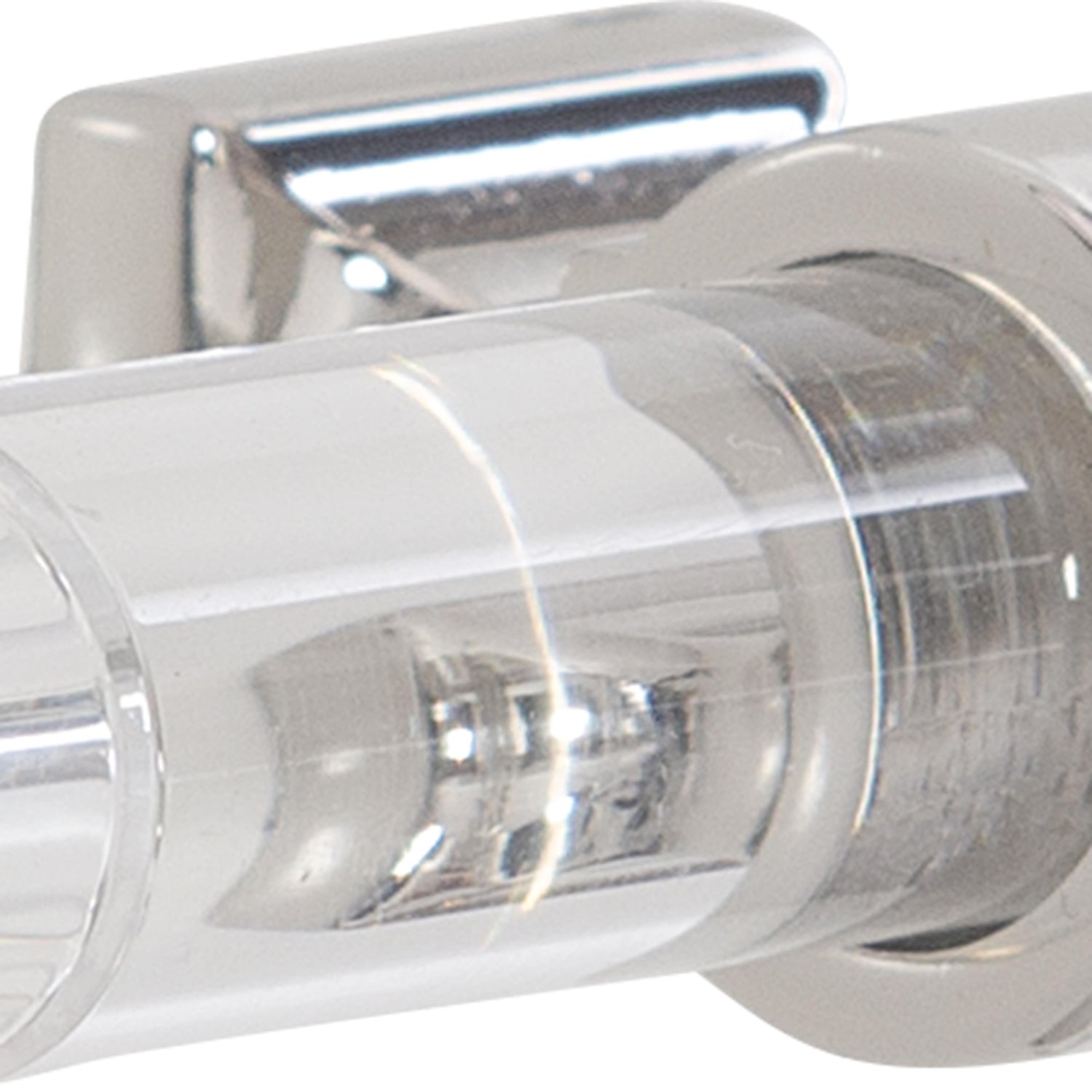 - Two soft-close drawers with drawer fronts in Lacquered White finish. Hardware of lucite and Polished stainless steel