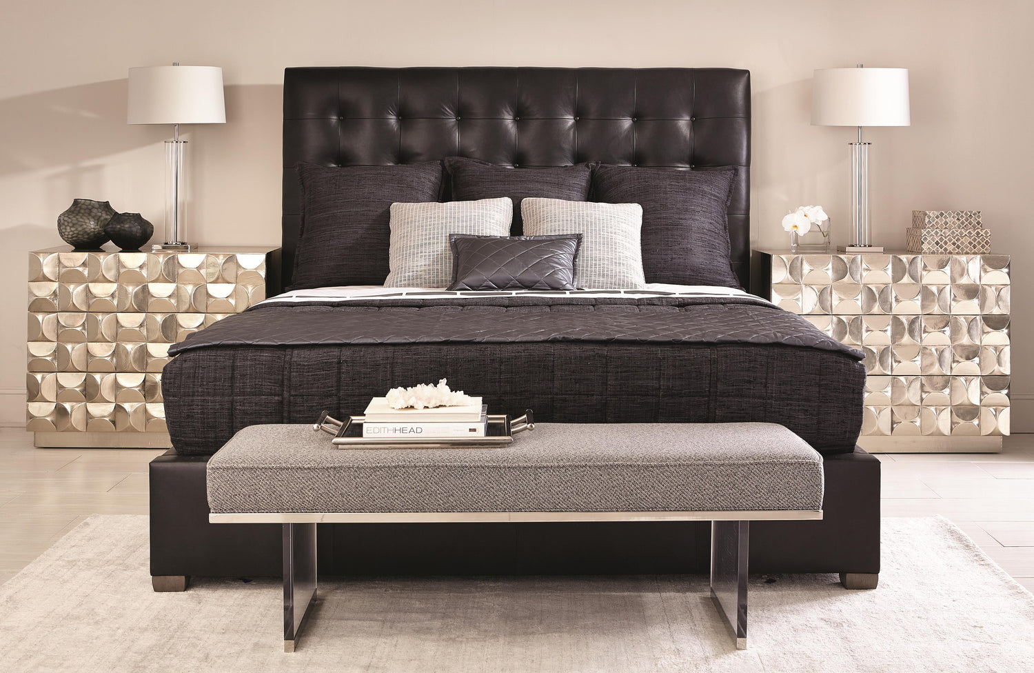 Avery Black/Grey Leather Panel King Bed (66" H)
