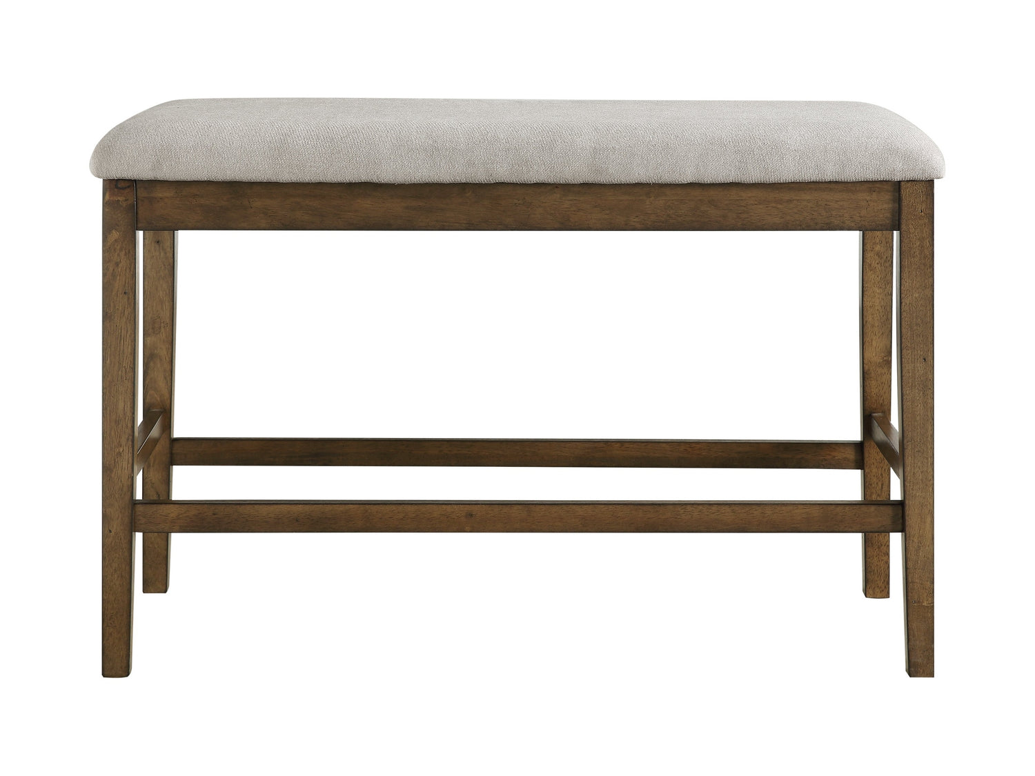 Sharing a meal with friends and family is made easy with the Balin Collection. Designed for maximum efficiency and personal decorative preference, each feature of the collection lends individual character to the overall design. The counter height bench features gray textured fabric that covers the padded seat. The mindy veneer of the bench is finished in light oak for neutral accent to your casual dining space.