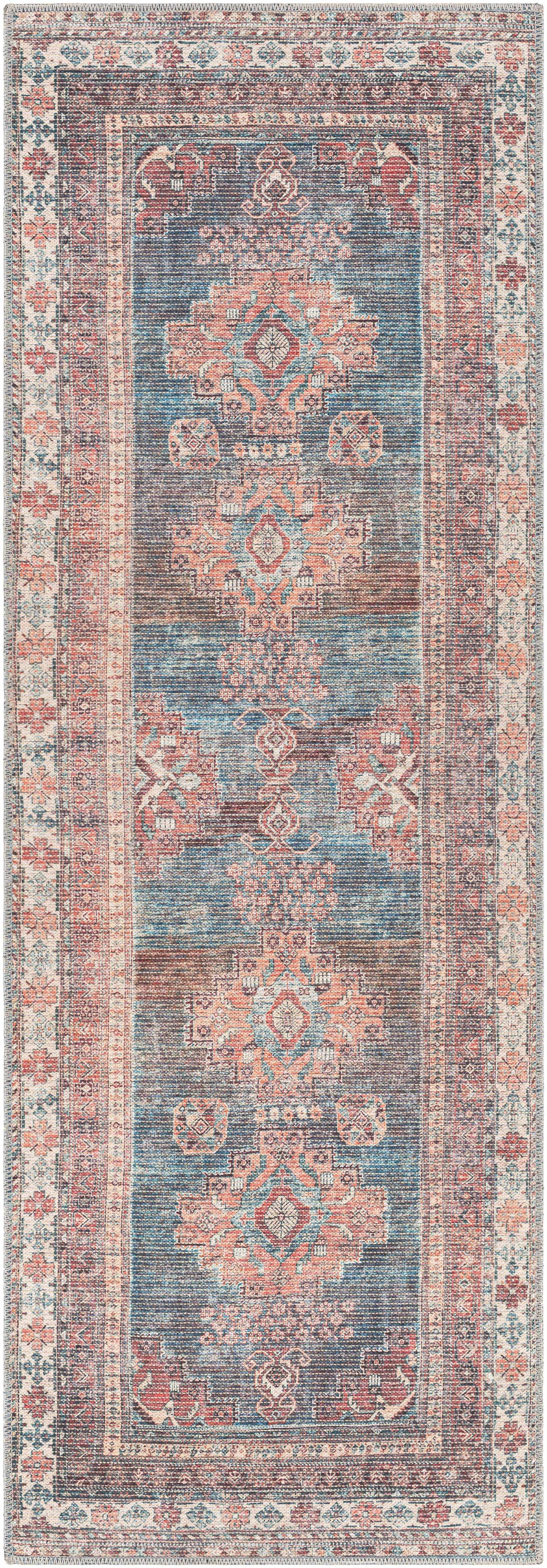 Baltinglass Rust & Blue Washable Area Rug - Clearance