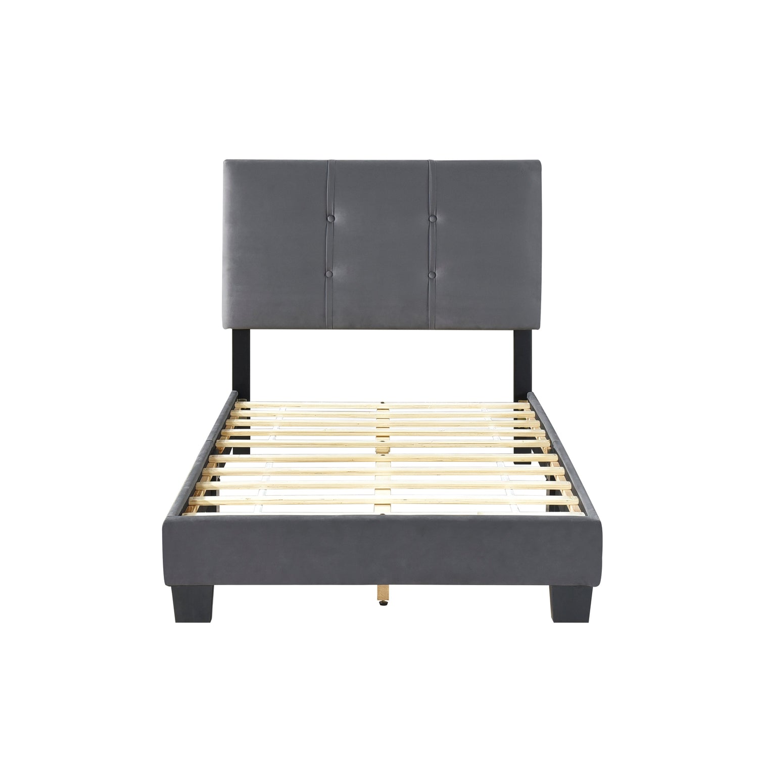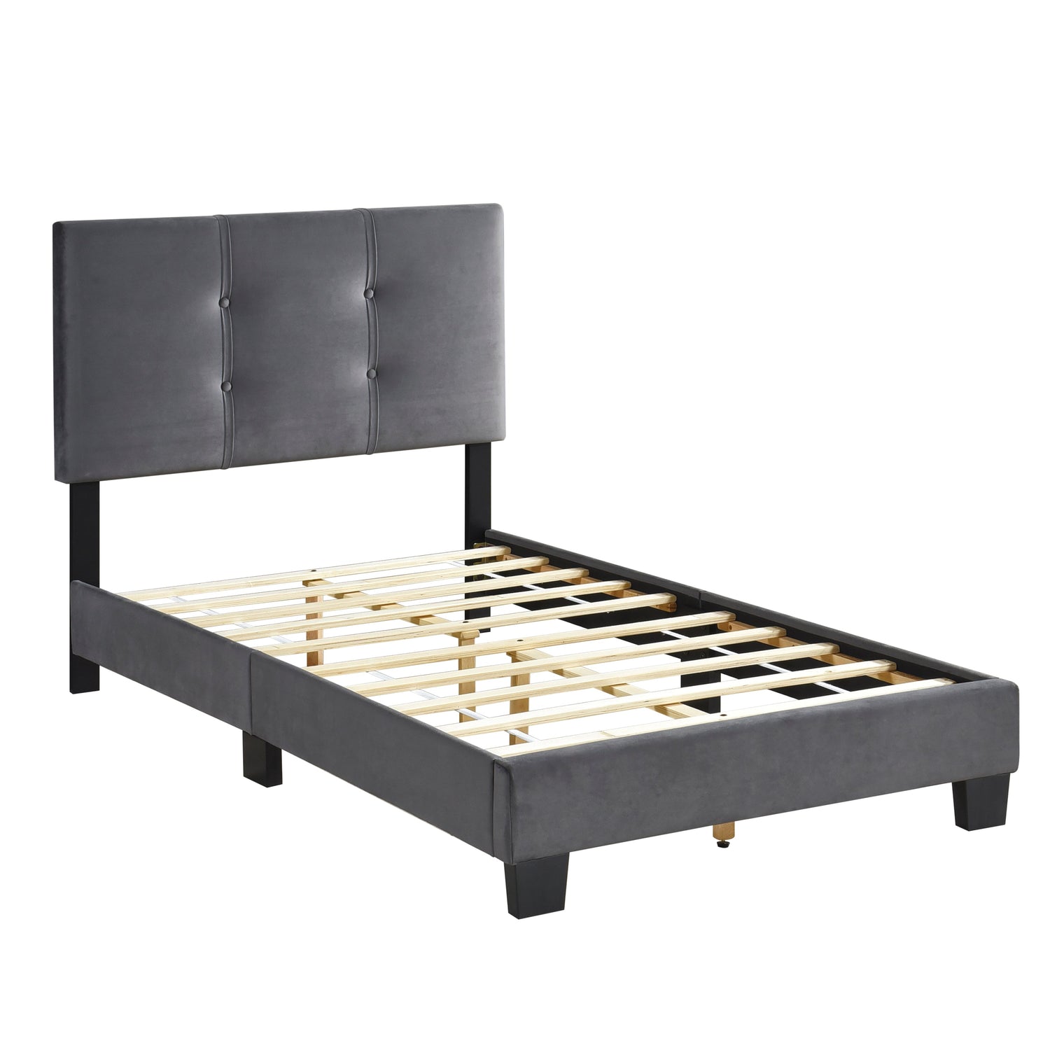 Providing convenient sleep space within your home is effectively solved with the addition of the Newberry Collection. Dark gray velvet fabric upholstery covers the twin upholstered bed for compatible decorative pairing to your home’s décor with its button-tufted accenting providing classic detail. The bed’s adjustable-height headboard, low-profile footboard, and rails are packaged within one box for ease of shipment.