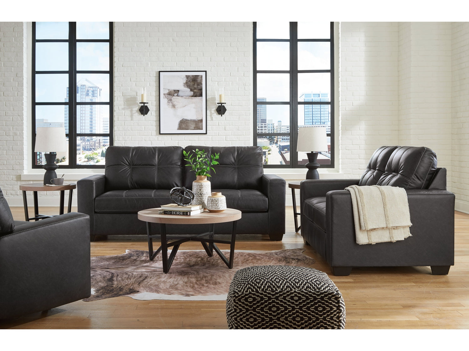 Everyday comfort meets versatile style in this sofa with matching loveseat and recliner. The handsome hue of the goes-with-anything faux leather takes away the stress of styling, expertly pairing with your existing aesthetic. From kicking back on the weekends to relaxing post-work, living room lounging has never been so chic.