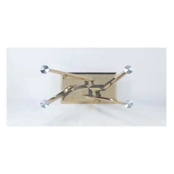 Gold metallic design complements clear glass surface, creating a beautiful presentation in your dining room. The stainless steel table base boasts a classic silhouette with great support while mirrored gold finish incorporates drama, glamour, luxury, and opulence into its design. The glass top gives you a large, smooth surface, providing the dining area with a light and airy atmosphere.