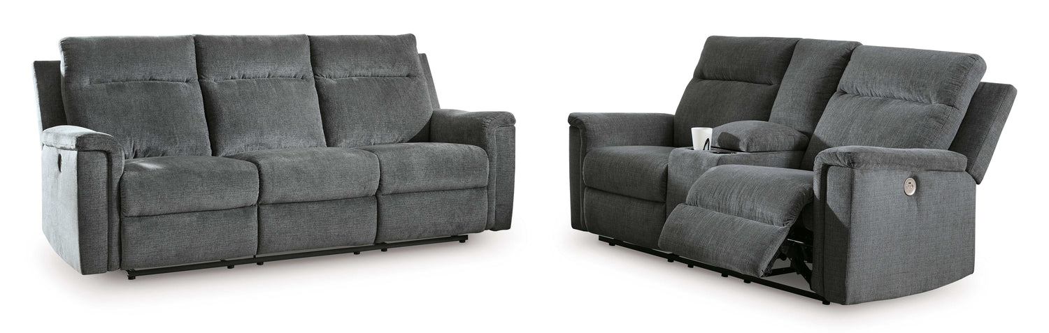 - Power Reclining Living Room Set includes 1 sofa and 1 loveseat