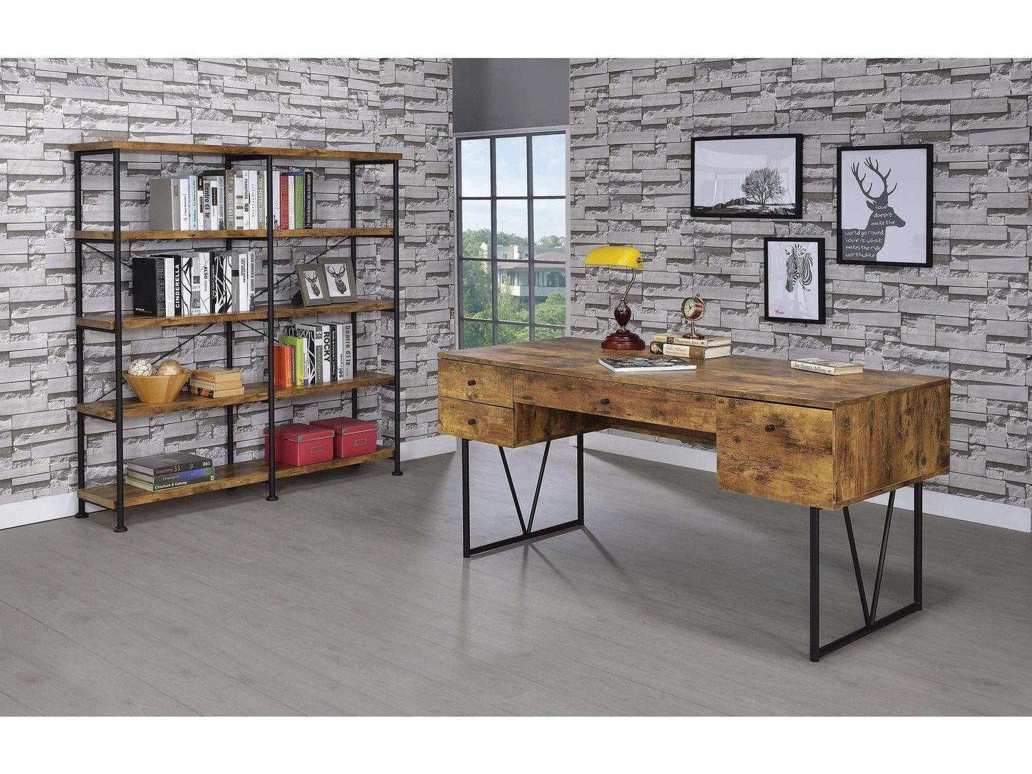 - Rustic industrial bookcase in rustic oak with black metal frame boasts clean lines for your modern decor