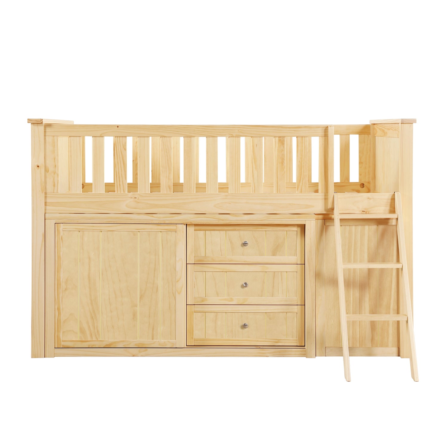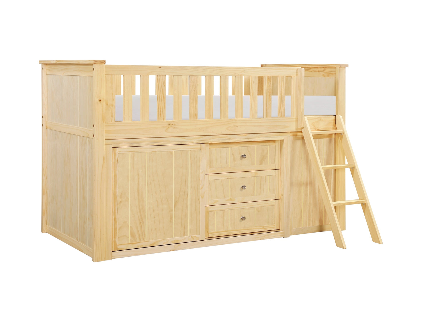 Bartly Natural Pine Low Loft Bunk with Bookcase & 2 Dressers