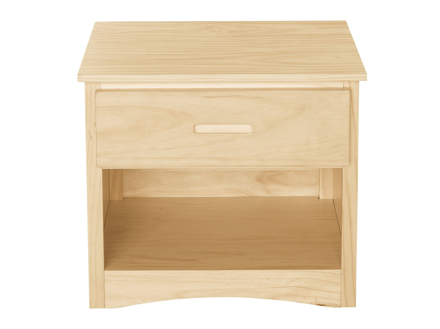 The transitional design of the Bartly Collection’s nightstand is featured in a natural pine finish making it an appropriate choice for a number of youth bedroom settings. Also available: twin over twin bunkbed, twin over full bunkbed, full over full bunkbed, twin over twin trundle bed with two built-in drawers, underbed dual toy boxes, twin trundle, dresser, mirror and chest.