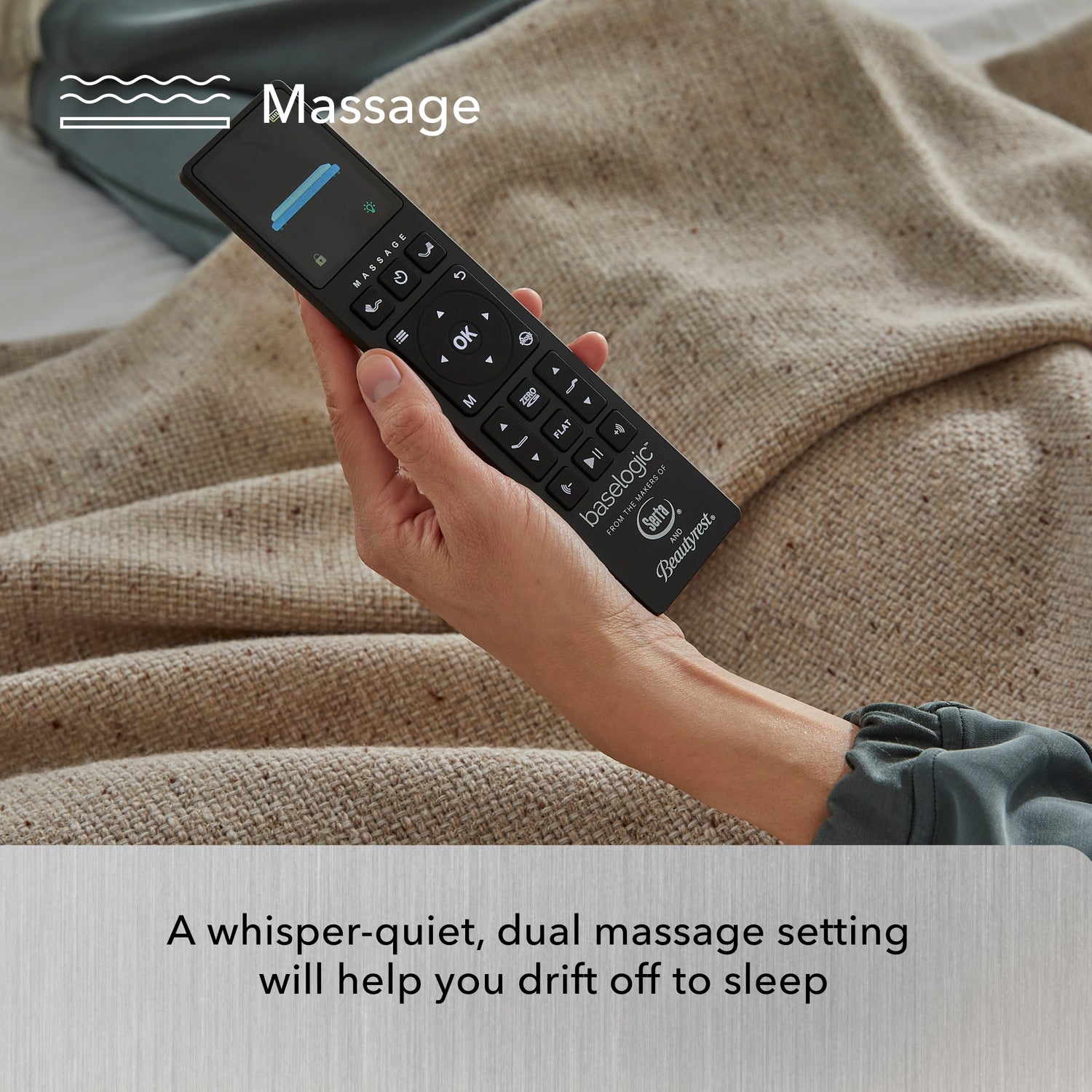 - Comfort Features: - Head and Foot Adjustability- Raise or lower the upper body and legs into the ideal sleep or lounge position - Zero-Gravity Preset- Helps relieve pressure points for enhanced relaxation - Dual Massage- Whisper-quiet massage settings to help you drift to sleep - Automatic Pillow Tilt- Support your head and neck while sitting up in bed