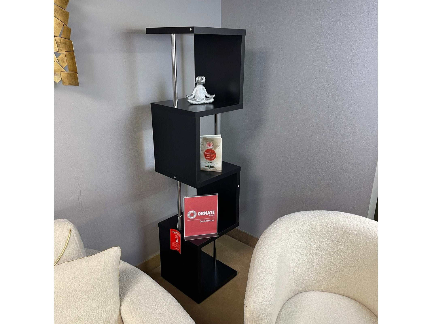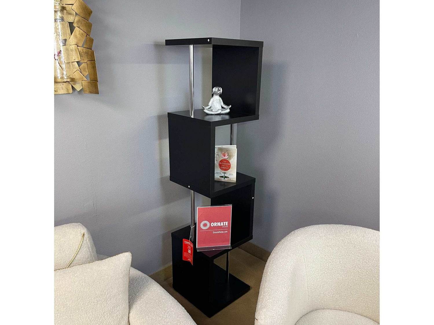 Go with the flow in a modern space with an edgy, artistic look. This four-tier bookcase is a great option for a compact space. Enjoy a modular, geometric silhouette and a choice of finishes. Steel supports reinforce shelving that hosts books and decor. Choose from finishes that intensify the attitude of your custom space.