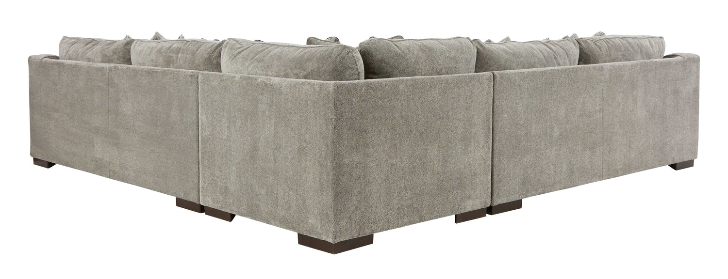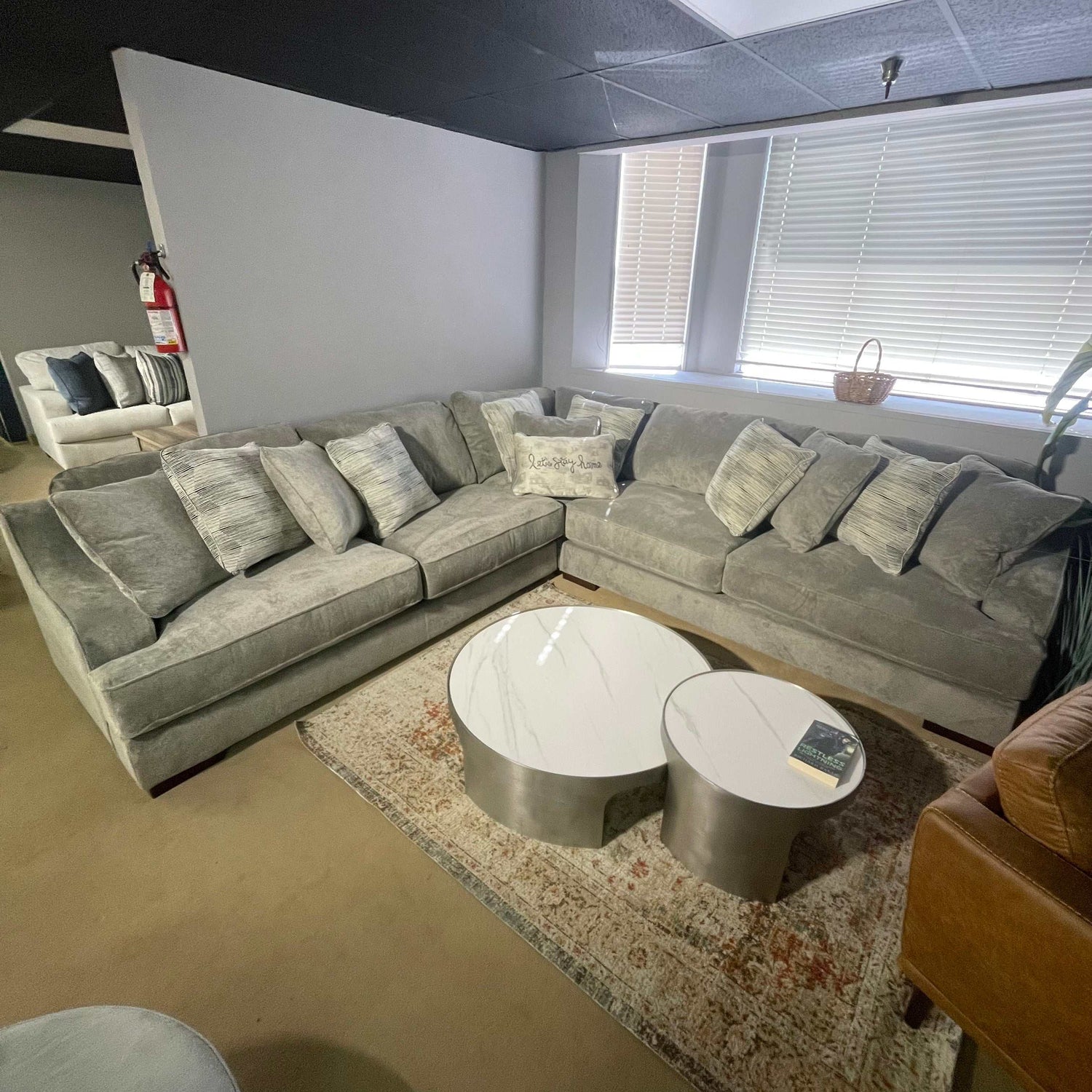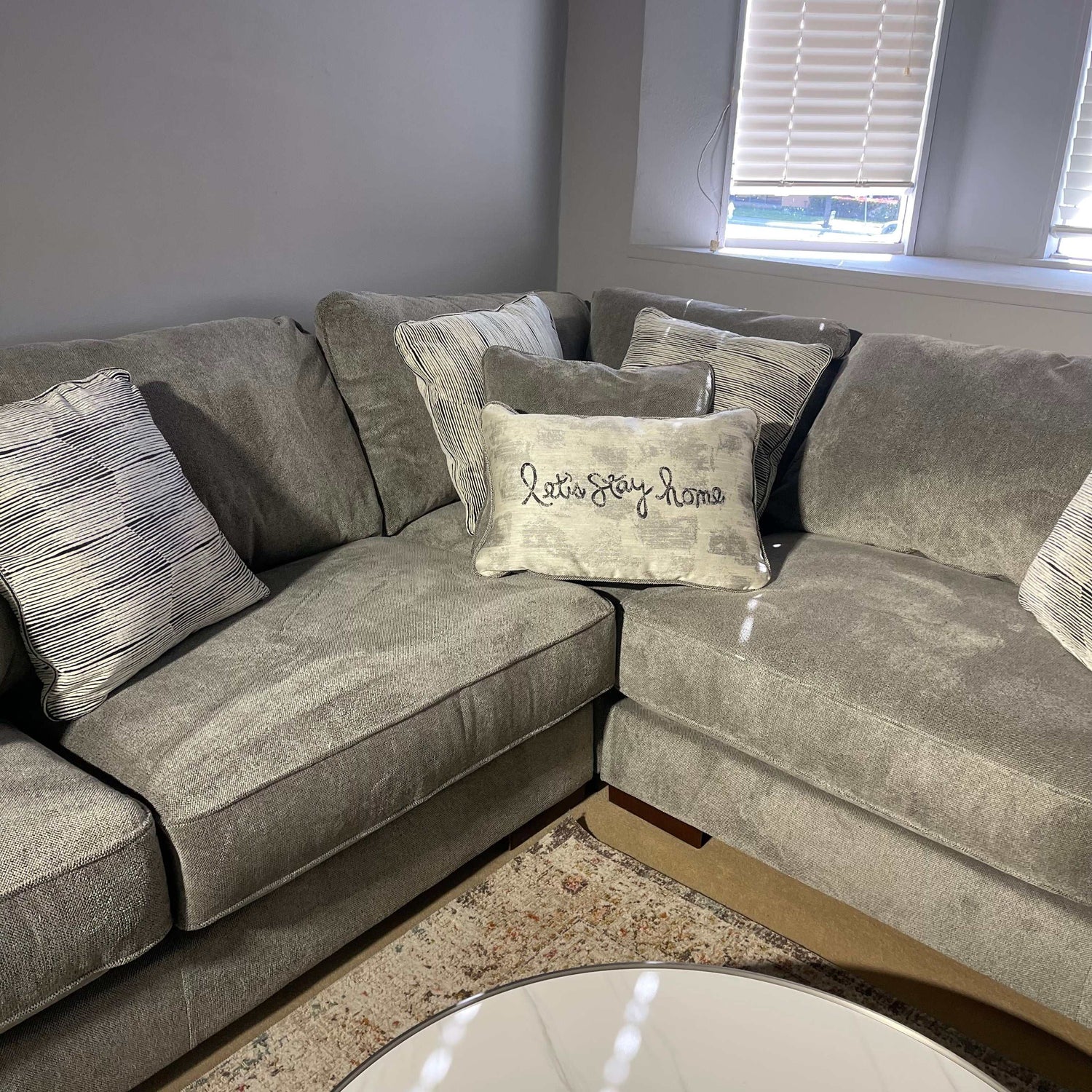 Get a leg up on comfort with this sectional. Sumptuously soft smoke gray upholstery welcomes you with open arms. A versatile performer, this stylish sectional steps in as a contemporary spot for impromptu entertaining.